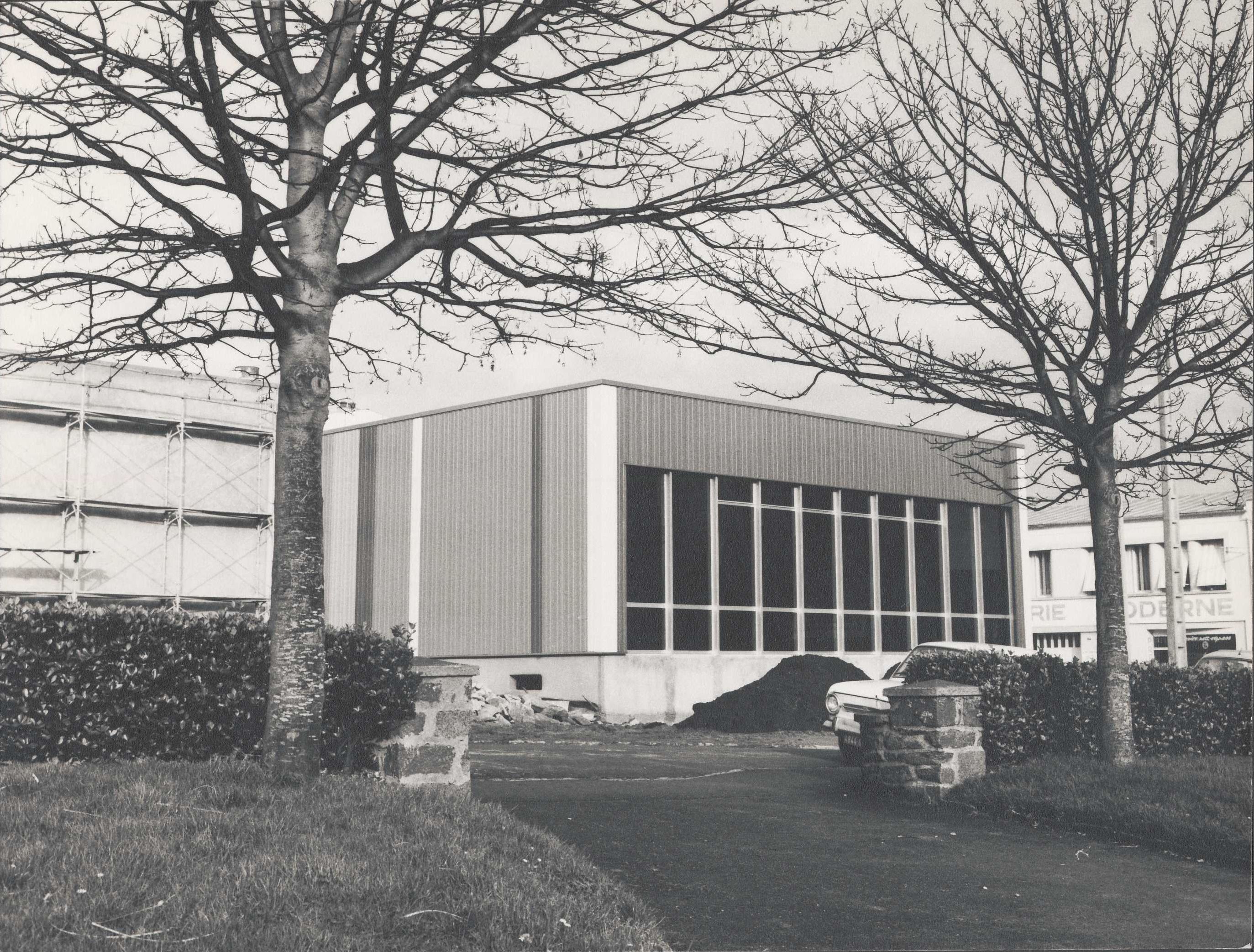 AC Brest : 2 Fi 897. Piscine municipale de Recouvrance. Travaux : vue extérieure. J. Duchesne, 1975.