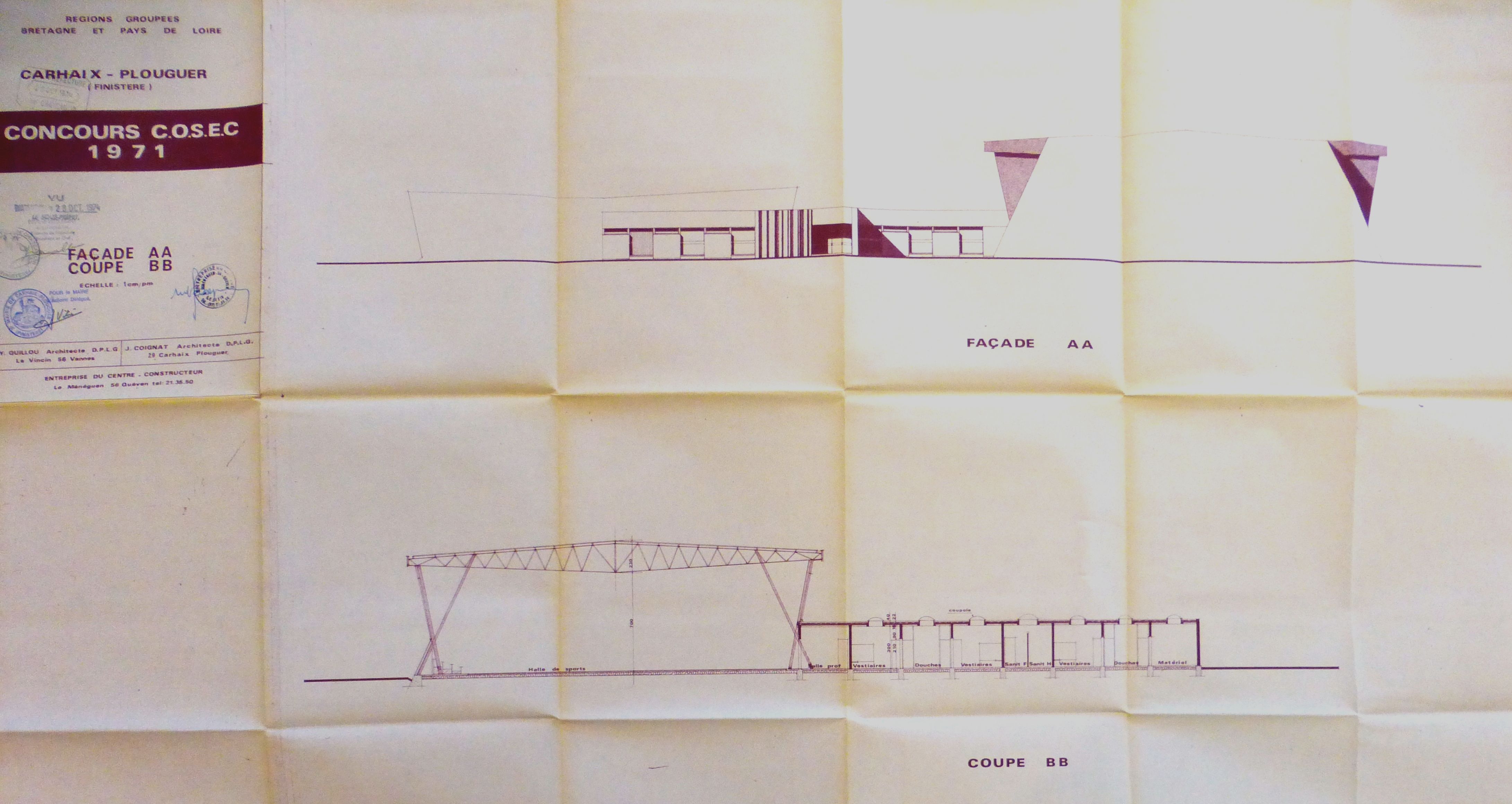 AD Finistère : 1894 W 9. Façade et coupe. Y. Guillou, 1974.