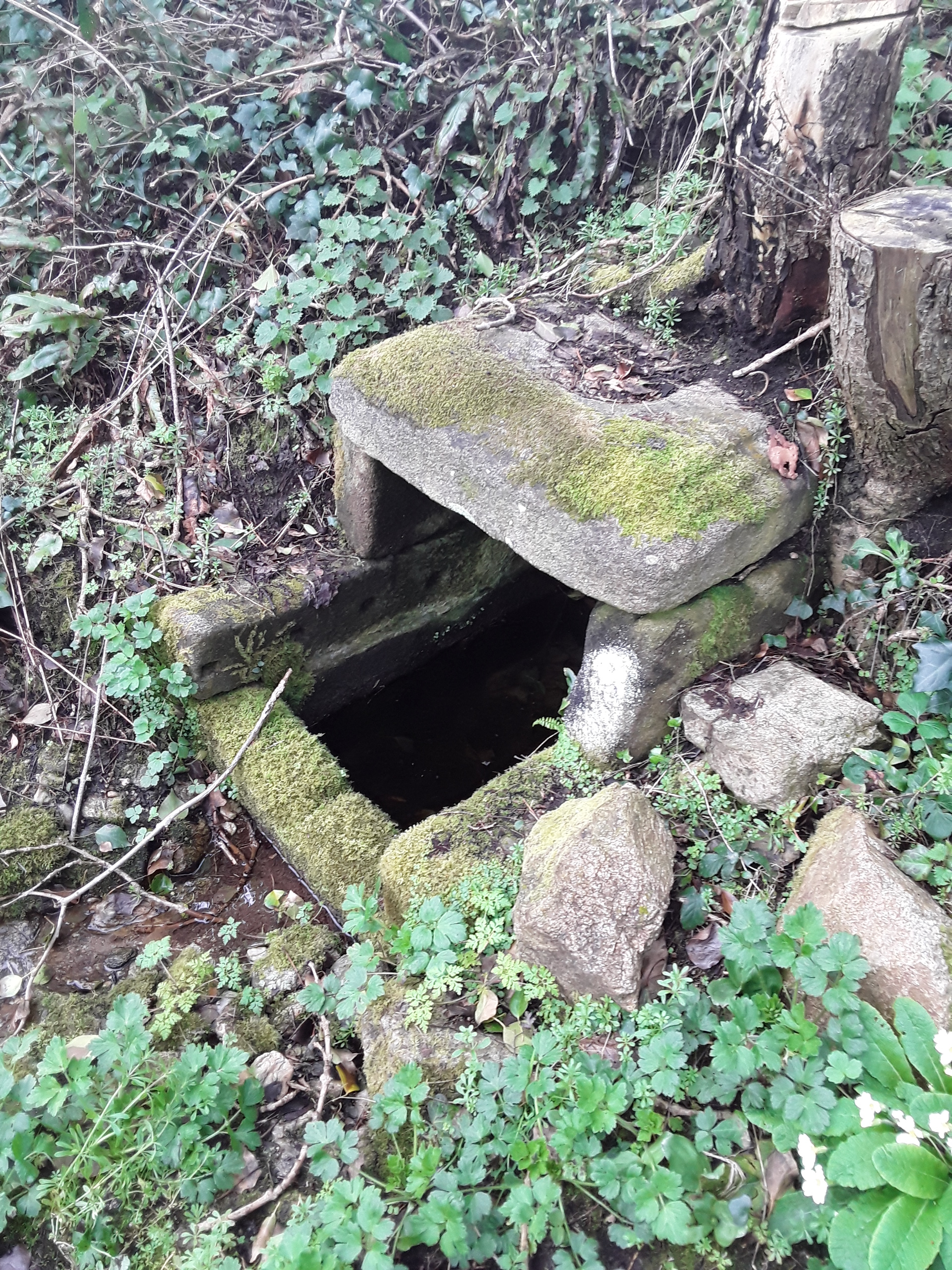 Fontaine dite "du presbytère", couverture de la source par une simple dalle de granite.Immatriculation