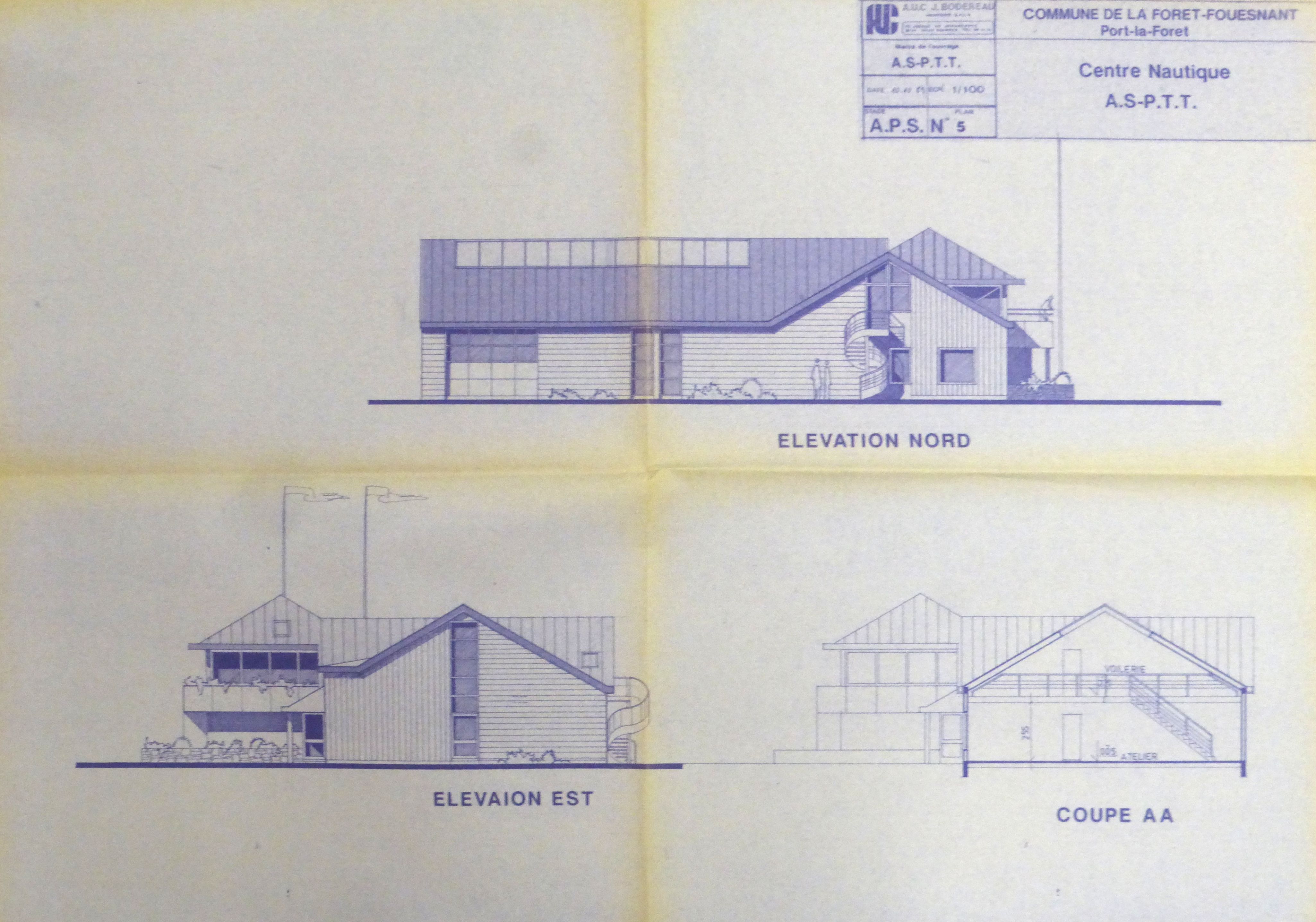AD Finistère : 235 J 140. Élévations nord et est et coupe AA. J. Bodereau, 1989.
