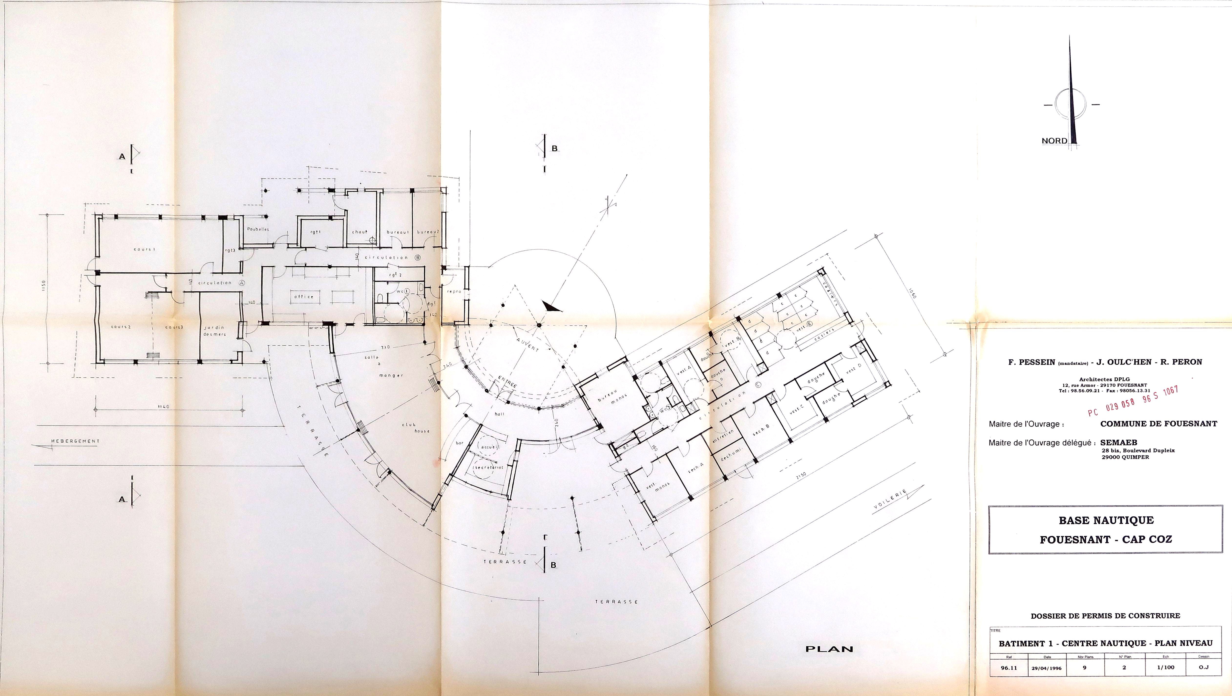 AC Fouesnant : PC n° 02905896S1067. Centre nautique : plan. F. Pessein, 1996.