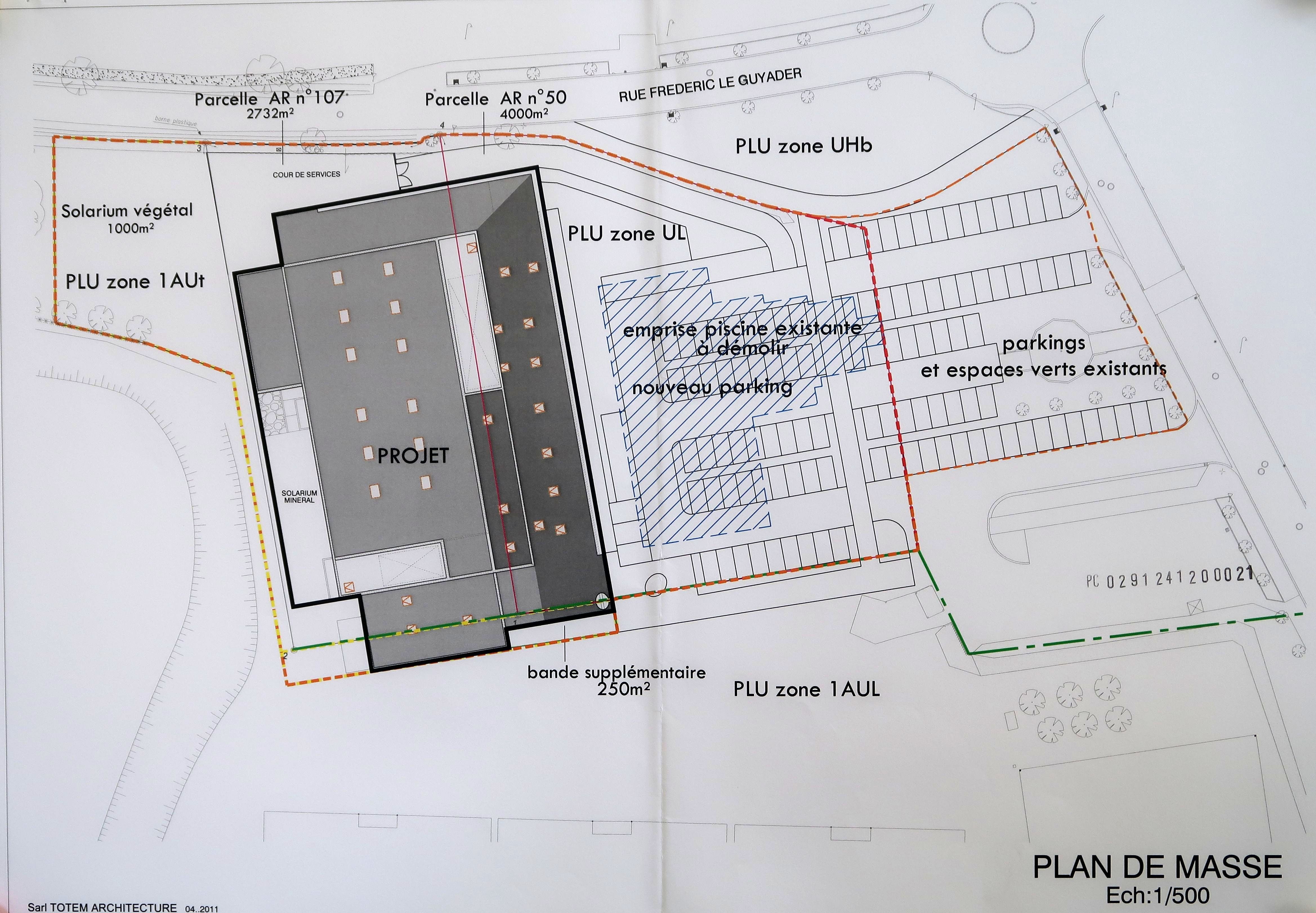 AC Lesneven : PC n° 0291241200021. Plan de masse. Totem Architecture, 2012.