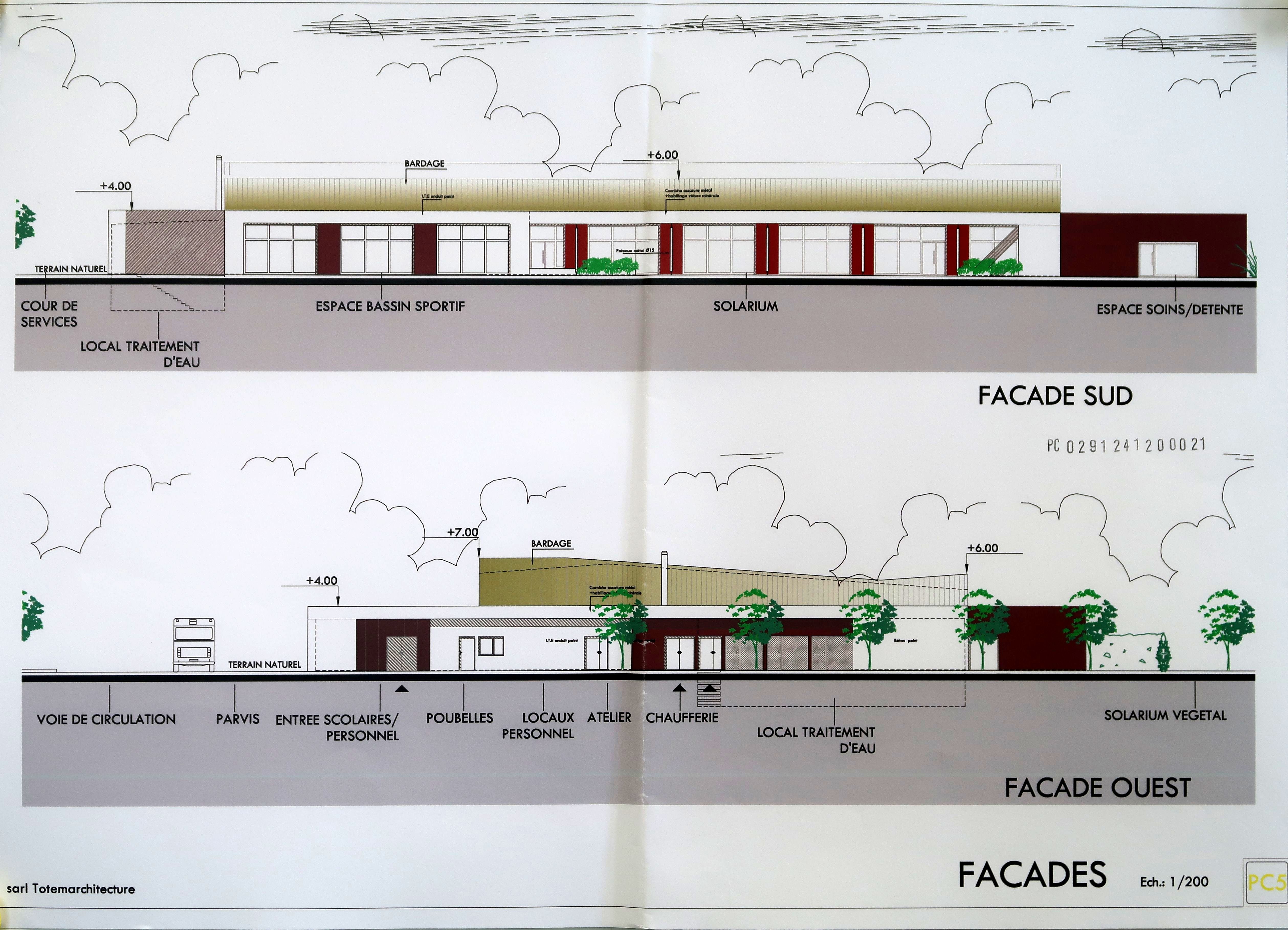 AC Lesneven : PC n° 0291241200021. Façades sud et ouest. Totem Architecture, 2012.