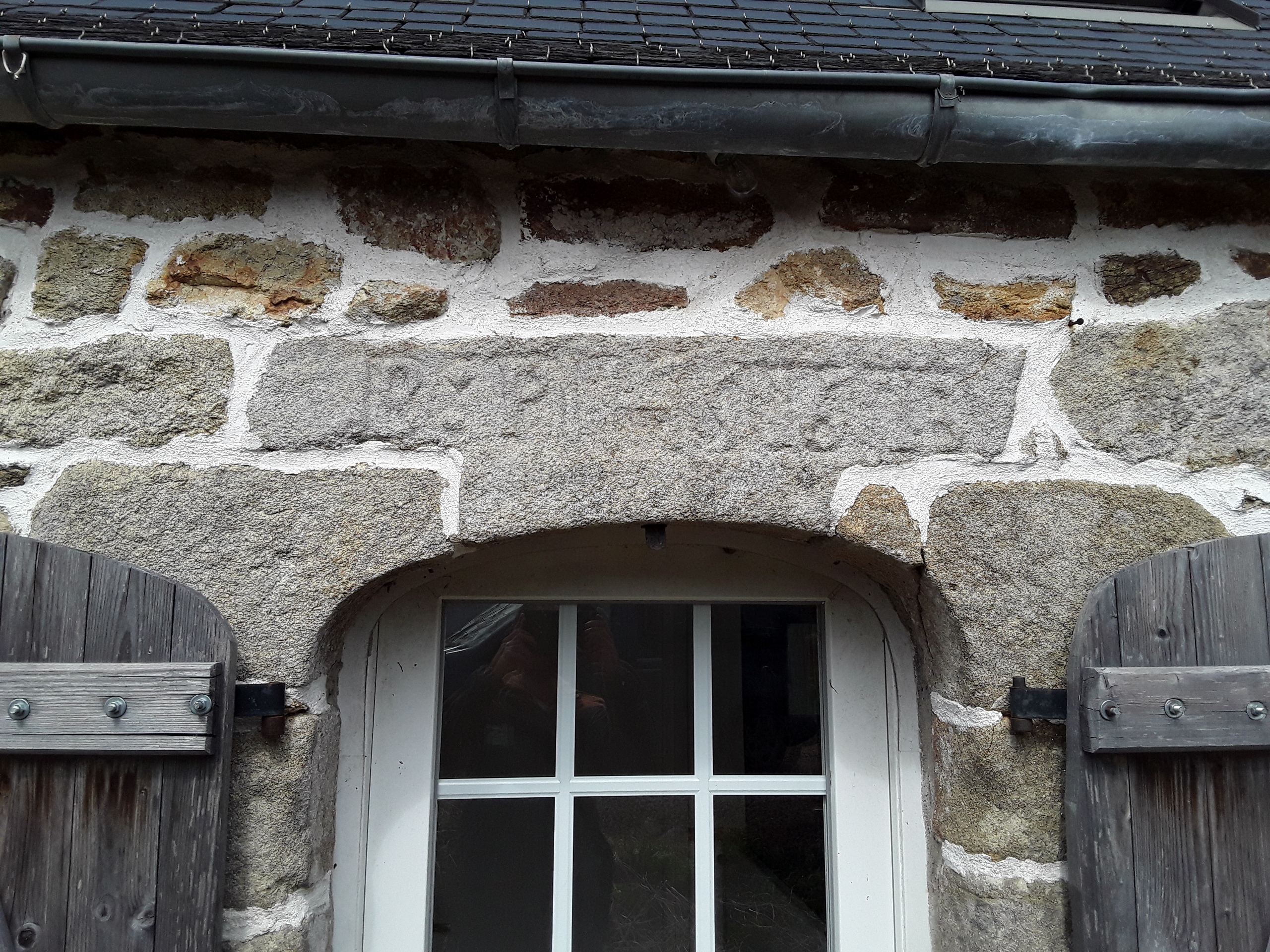 Détail du linteau du logis daté de 1673. (2018)Immatriculation