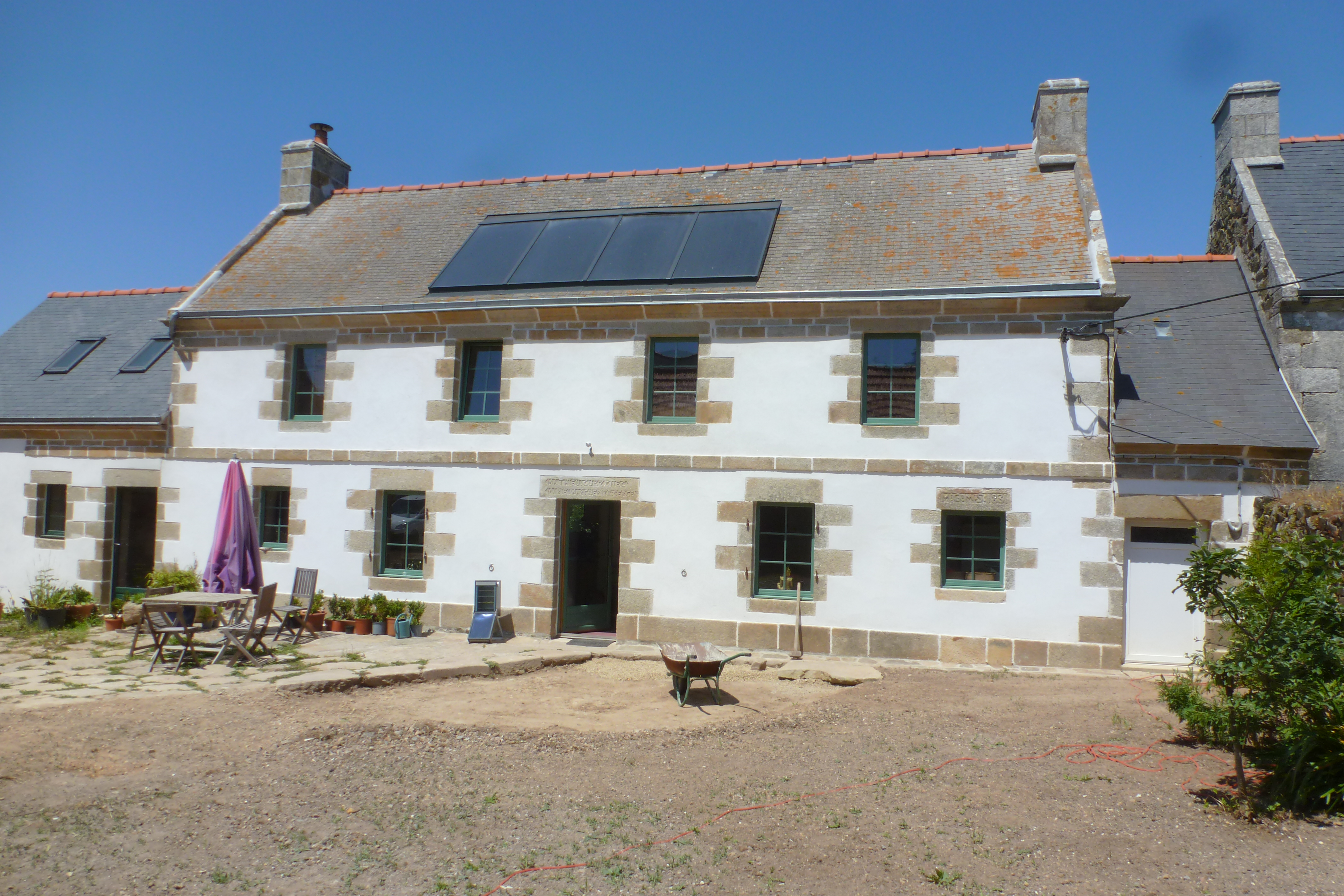 Ferme 3, élévation antérieure de l'alignement principal : logis daté 1834, écurie et cuisine des animaux.Immatriculation