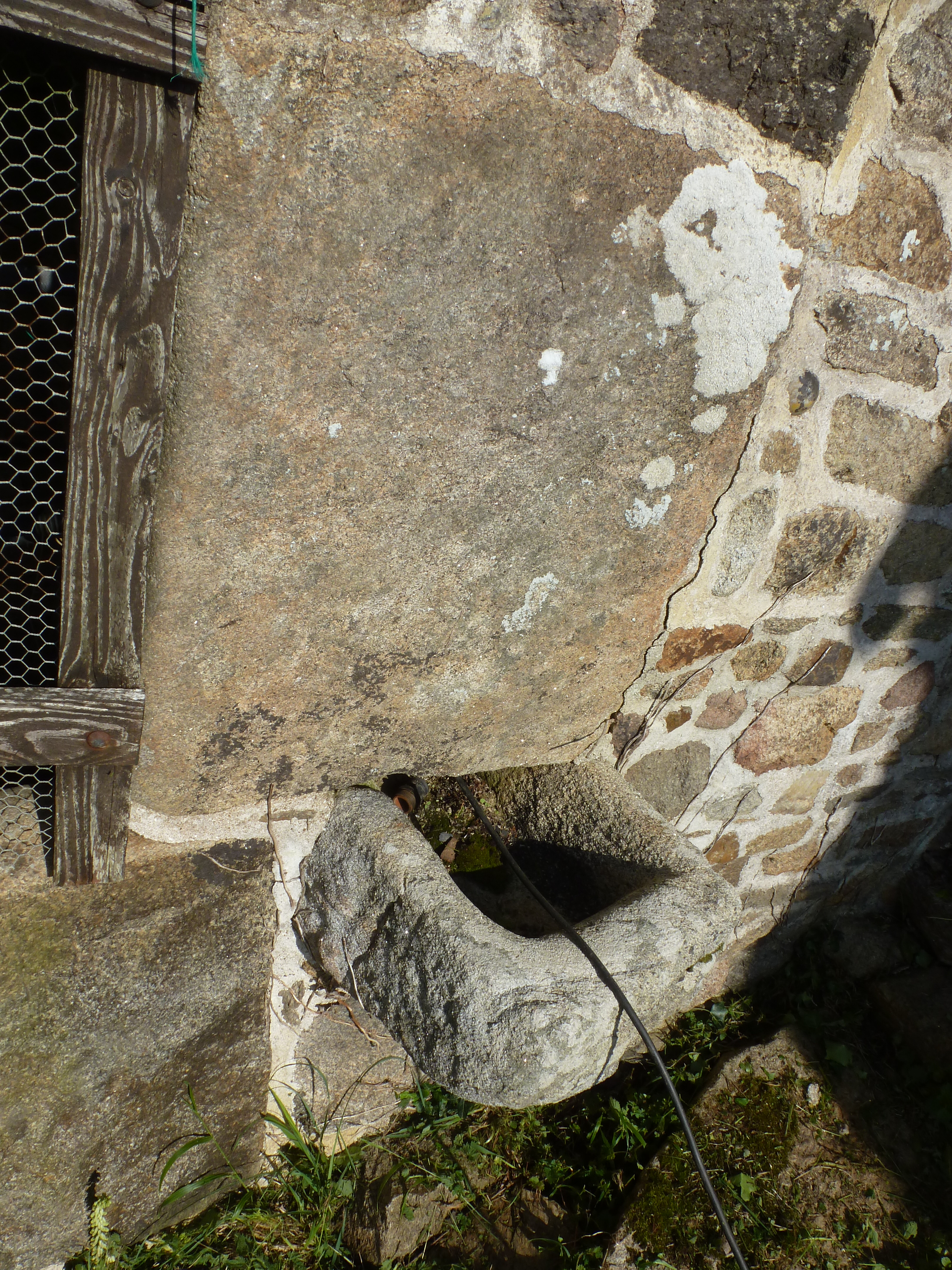 Puits daté 1783, pierre d'écoulement de l'eau, vue de dessus.Immatriculation