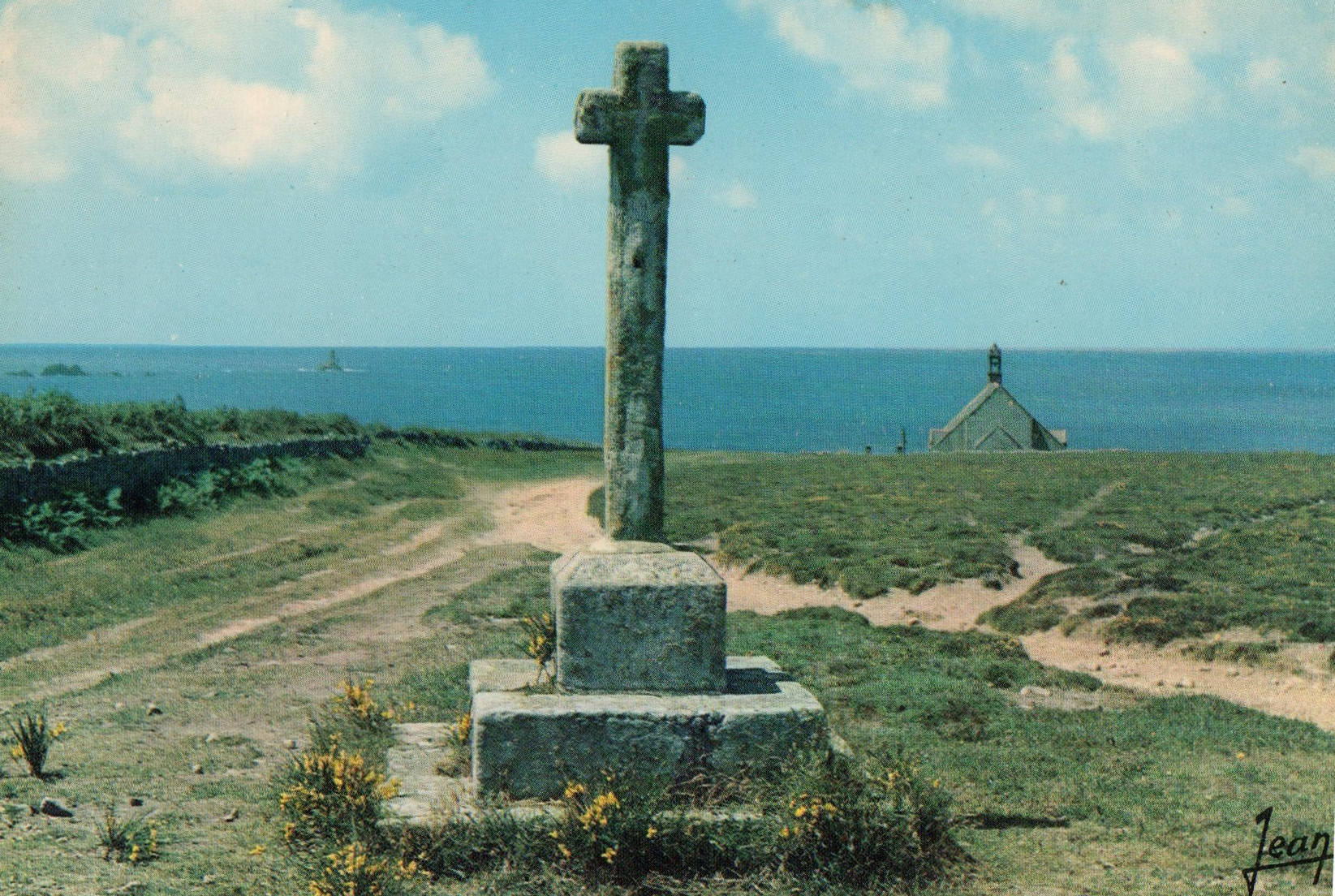 Vue générale prise de l'est avec la chapelle Saint-They en arrière plan. Reproduction d'une carte postale Jean Kerisit.Immatriculation
