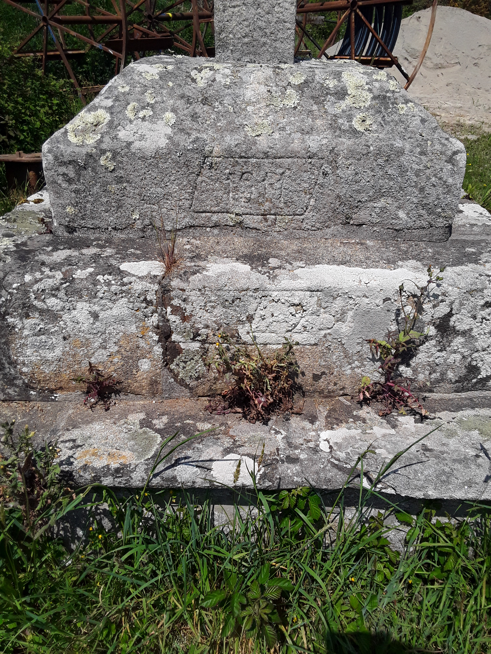 Croix dite de Quillivic Est, détail du socle et du soubassement : dates portées : 1911 et 1942Immatriculation