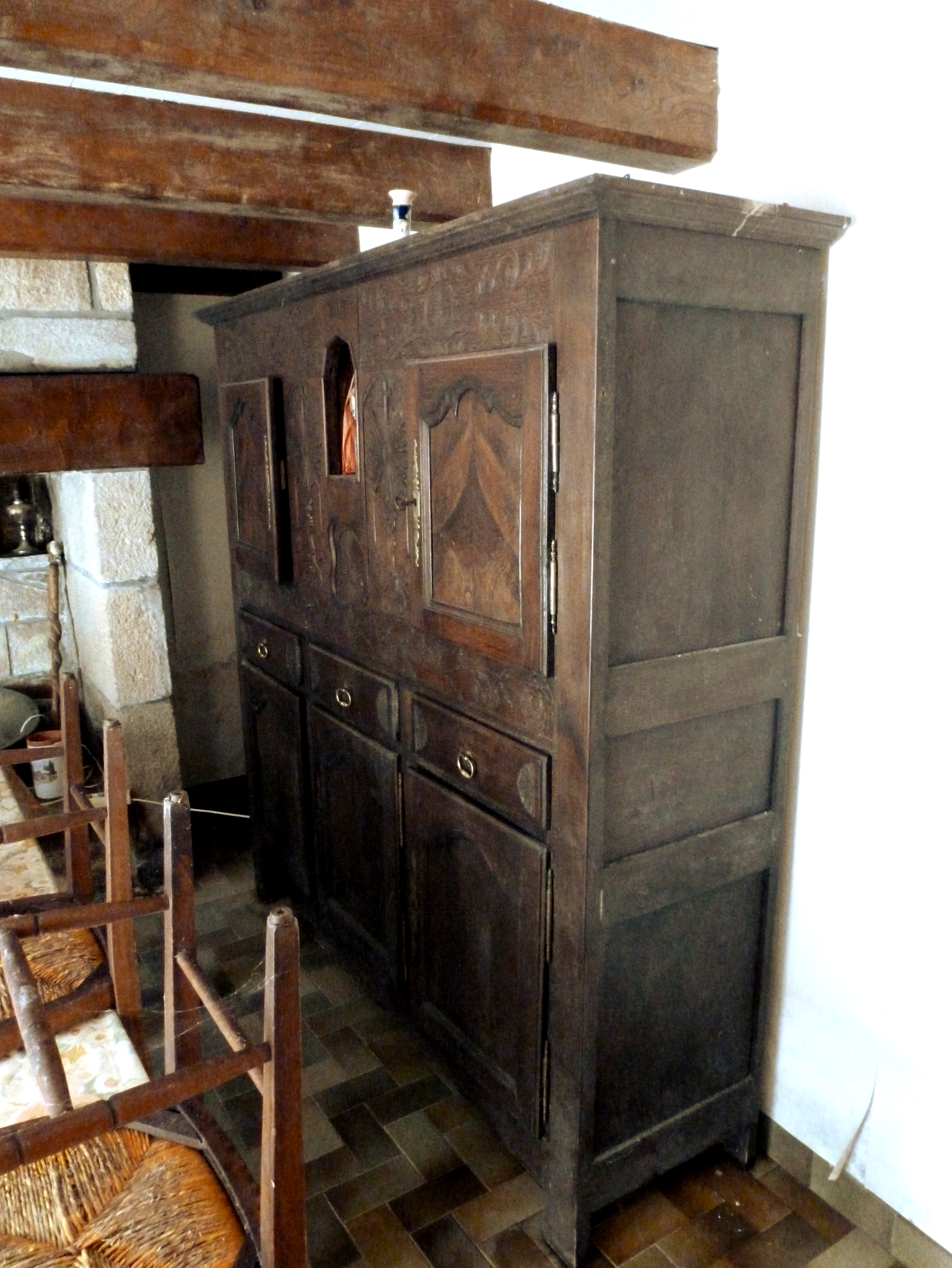 Drustuilh 13 daté 1886 et transformé en petite armoire, vue du côté. (2018)Immatriculation