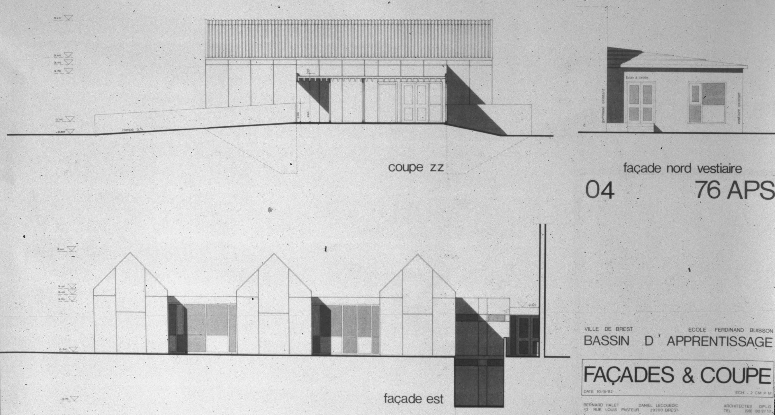 AC Brest : 10 Fi 533. Façades nord et est et coupe zz. B. Halet & D. Le Couédic, 1982.