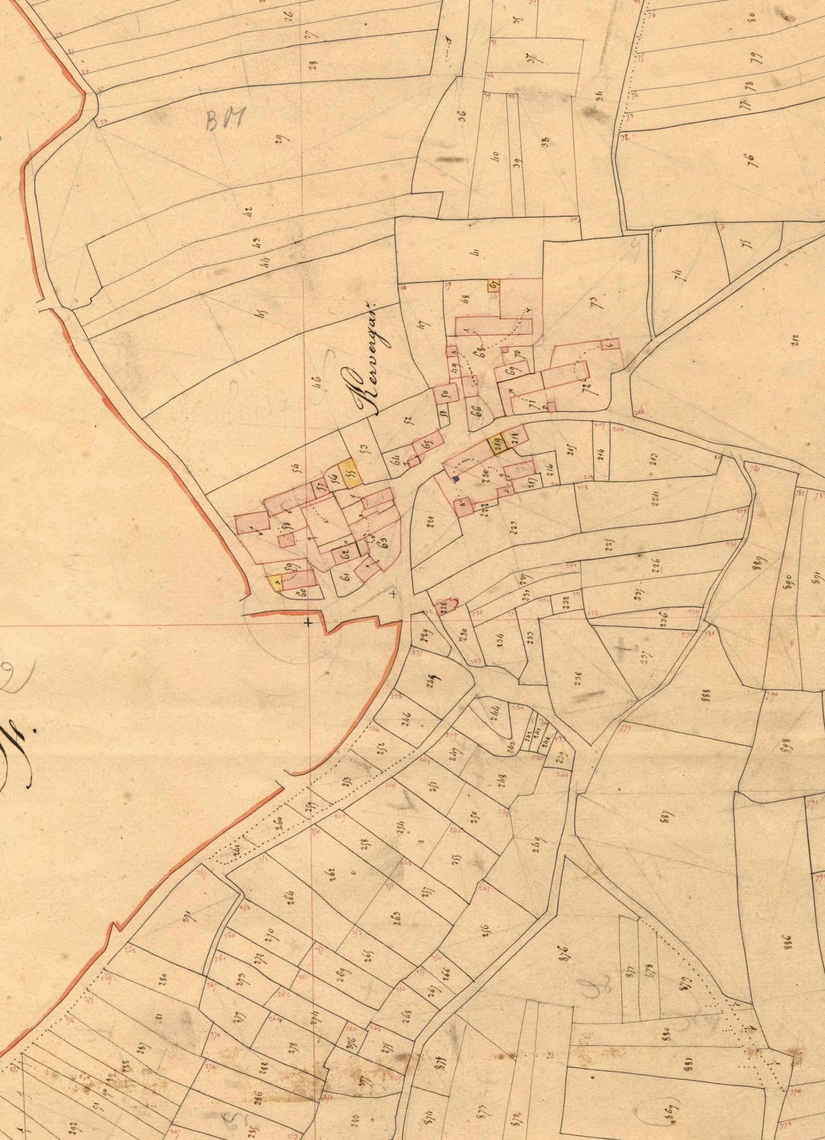 Village de Kervergar, partie nord-est, cadastre ancien de la commune de Plogoff, 1837.Immatriculation