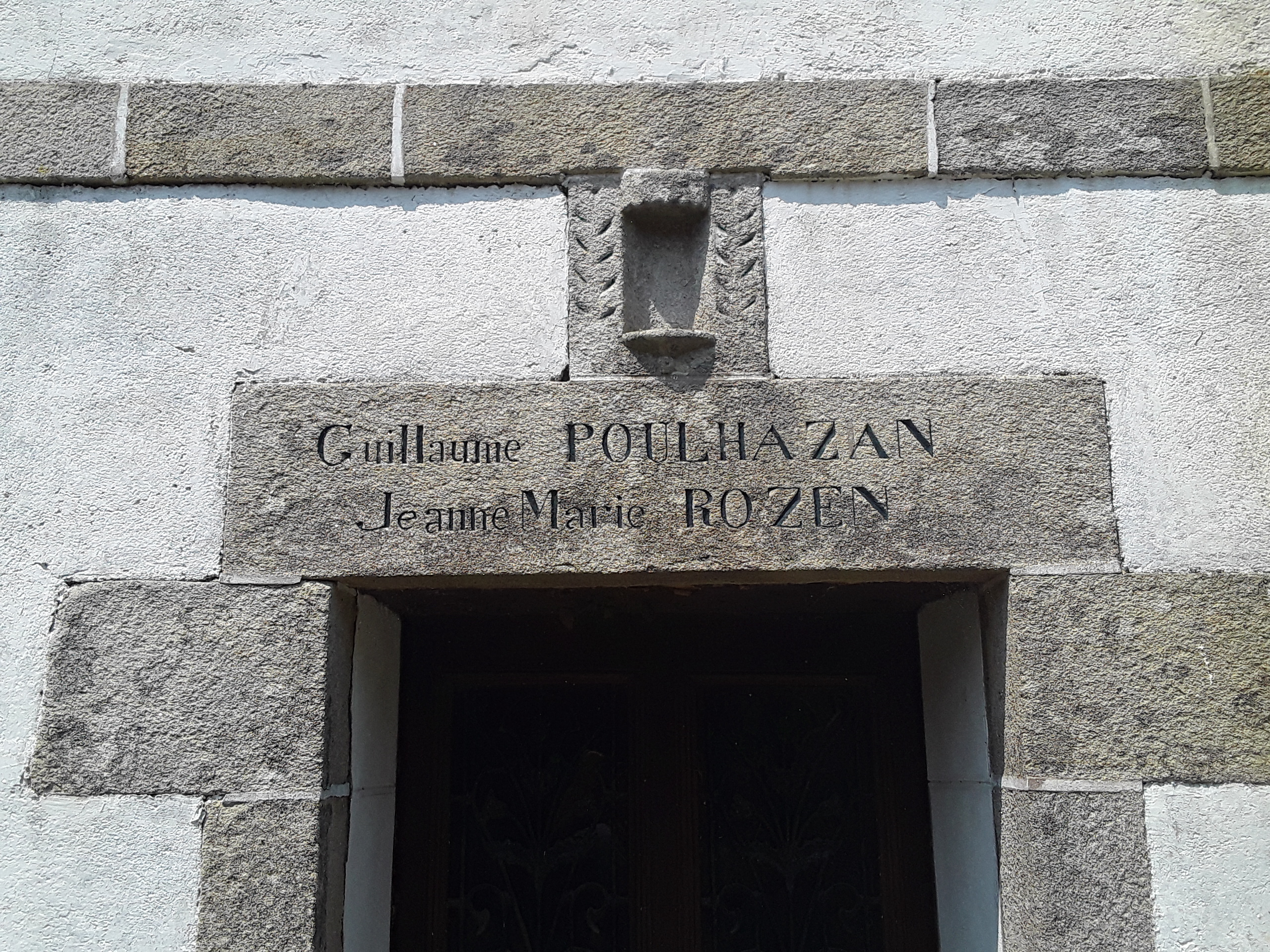 Logis daté 1894, linteau de la porte d'entrée et niche à saint.Immatriculation