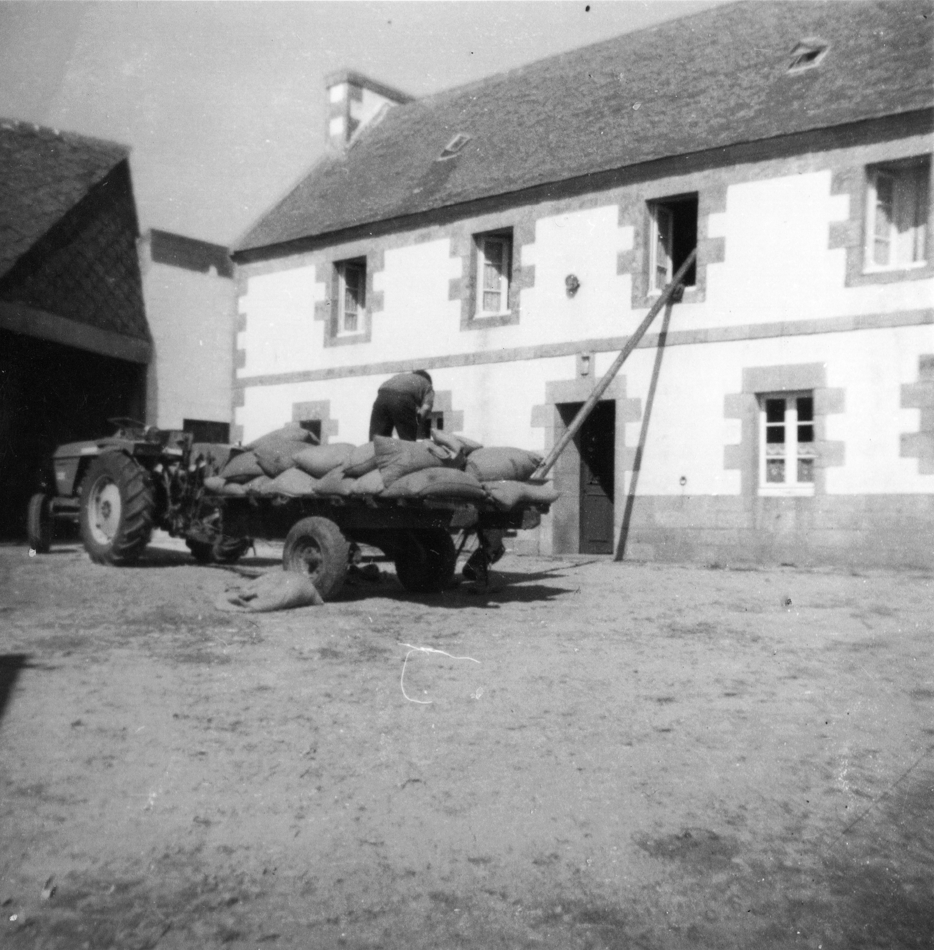 Montée des sacs de grains par une fenêtre de l'étage du logis.Immatriculation