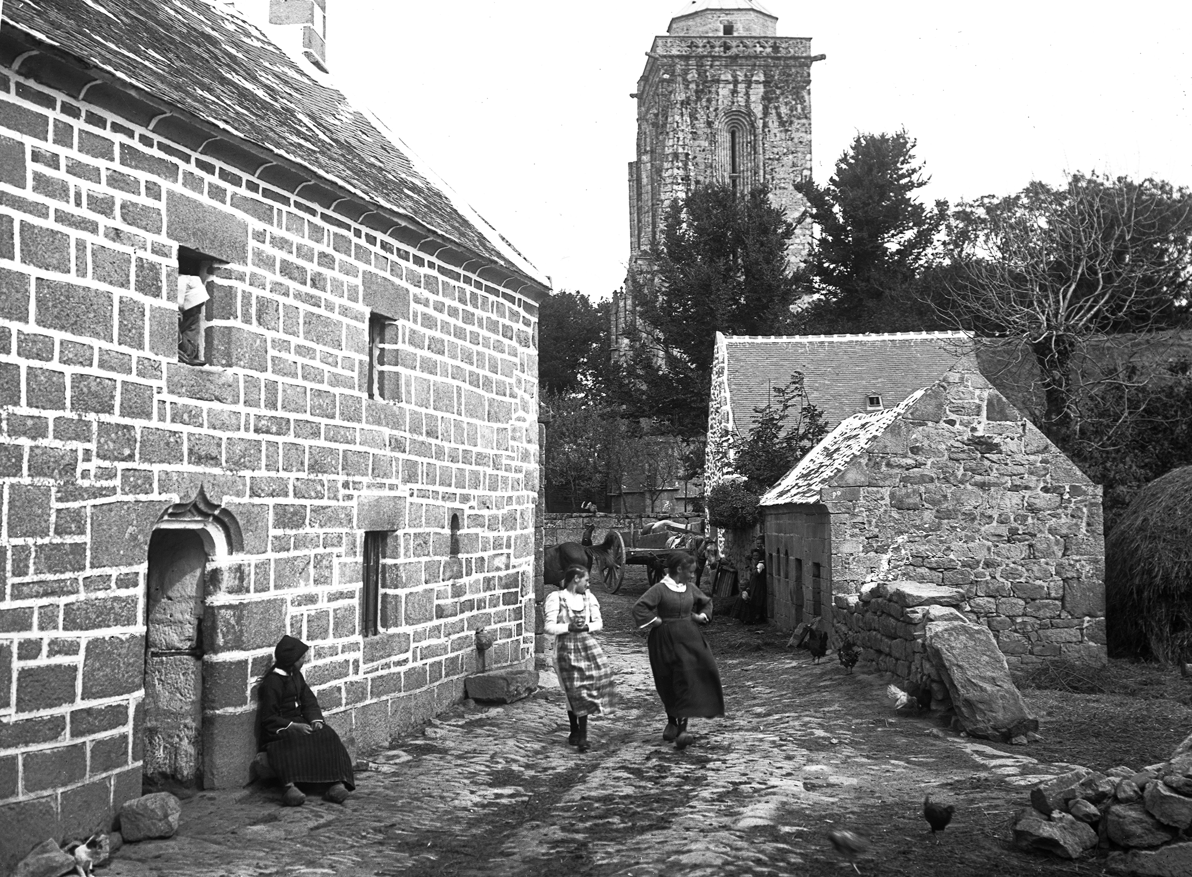 Vue générale de la rue, de la maison et des crèches à cochons vers 1900. (Repro plaque de verre, coll. particulière)Immatriculation
