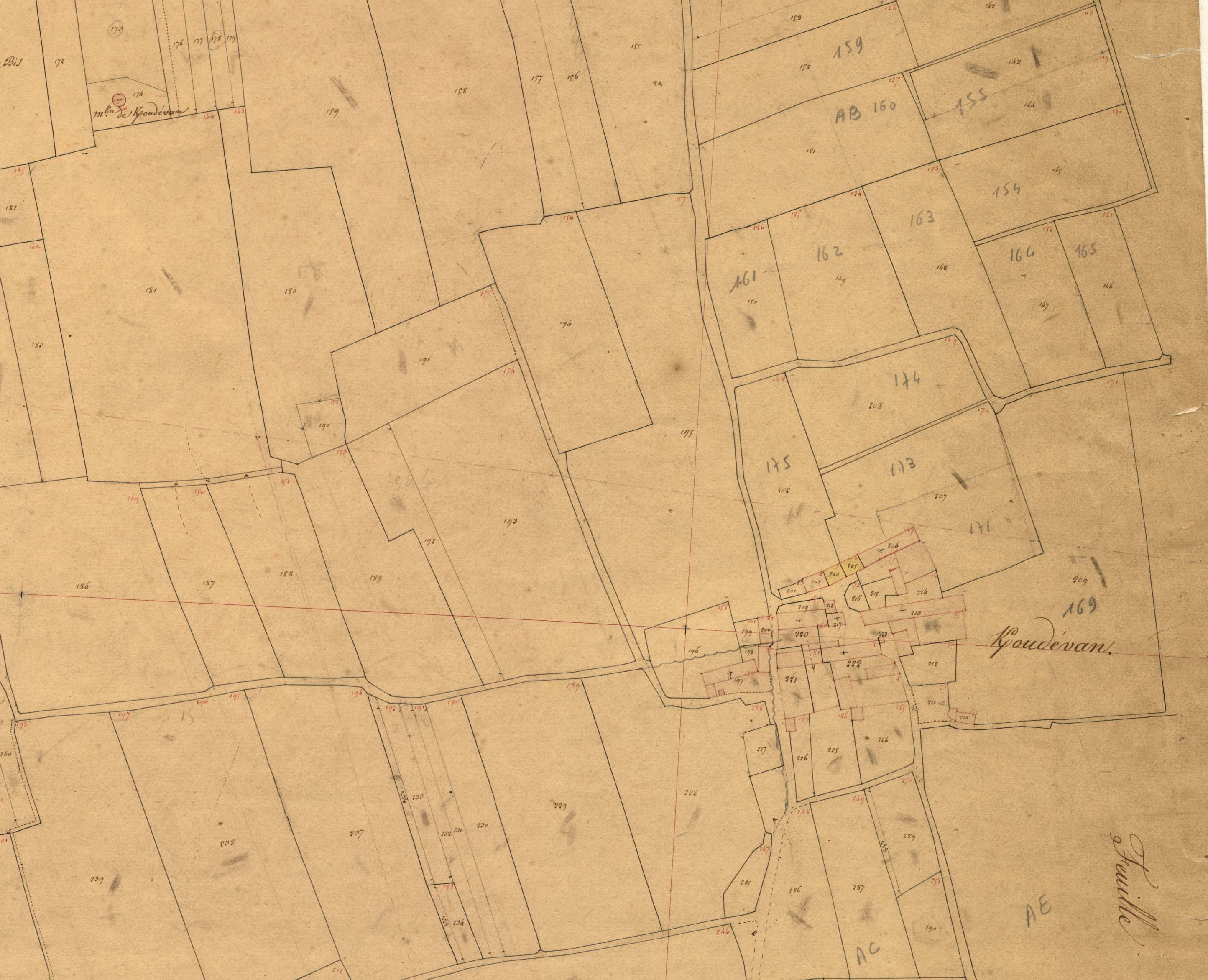Village de Kerodeven et son moulin, cadastre ancien de la commune de Primelin, 1837.Immatriculation