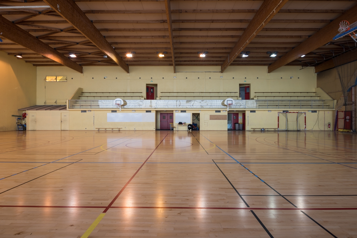 Vue intérieure de la salle de sports de 1976Immatriculation