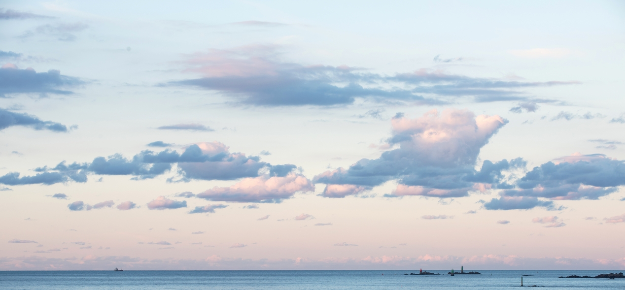 Vue panoramique depuis la plage au crépusculeImmatriculation