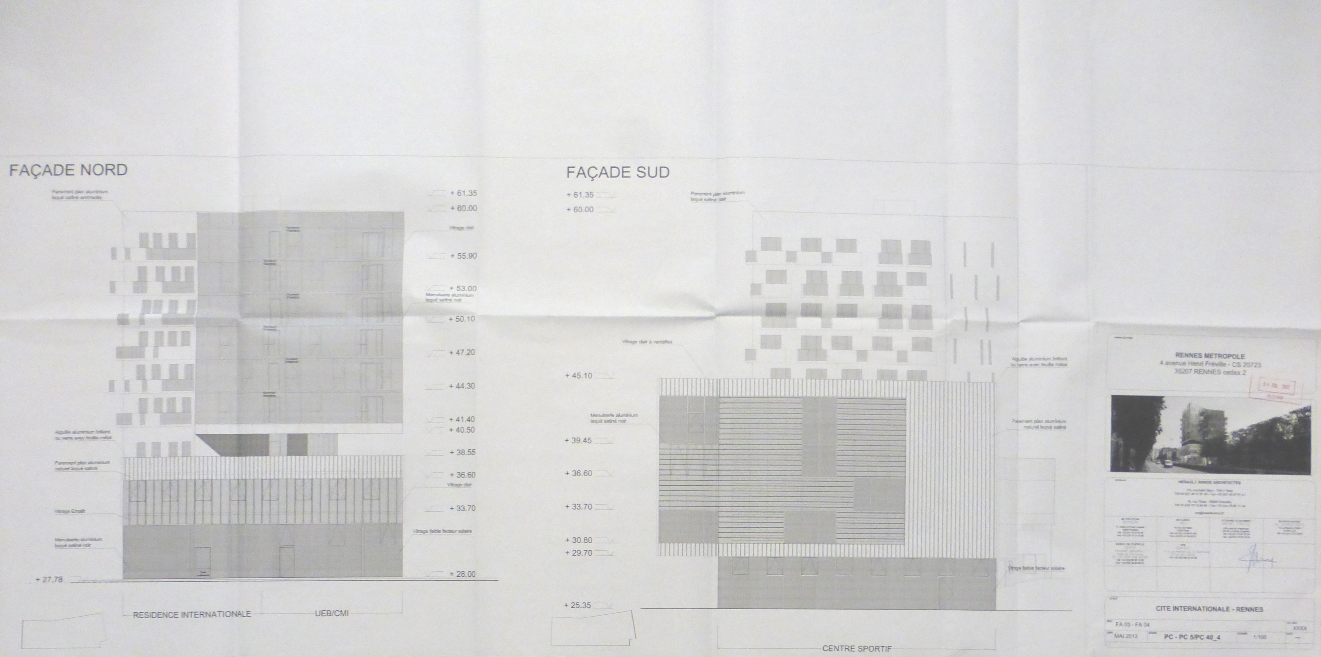 AC Rennes : non coté. Façades nord et sud. Hérault Arnod Architectes, 2012.