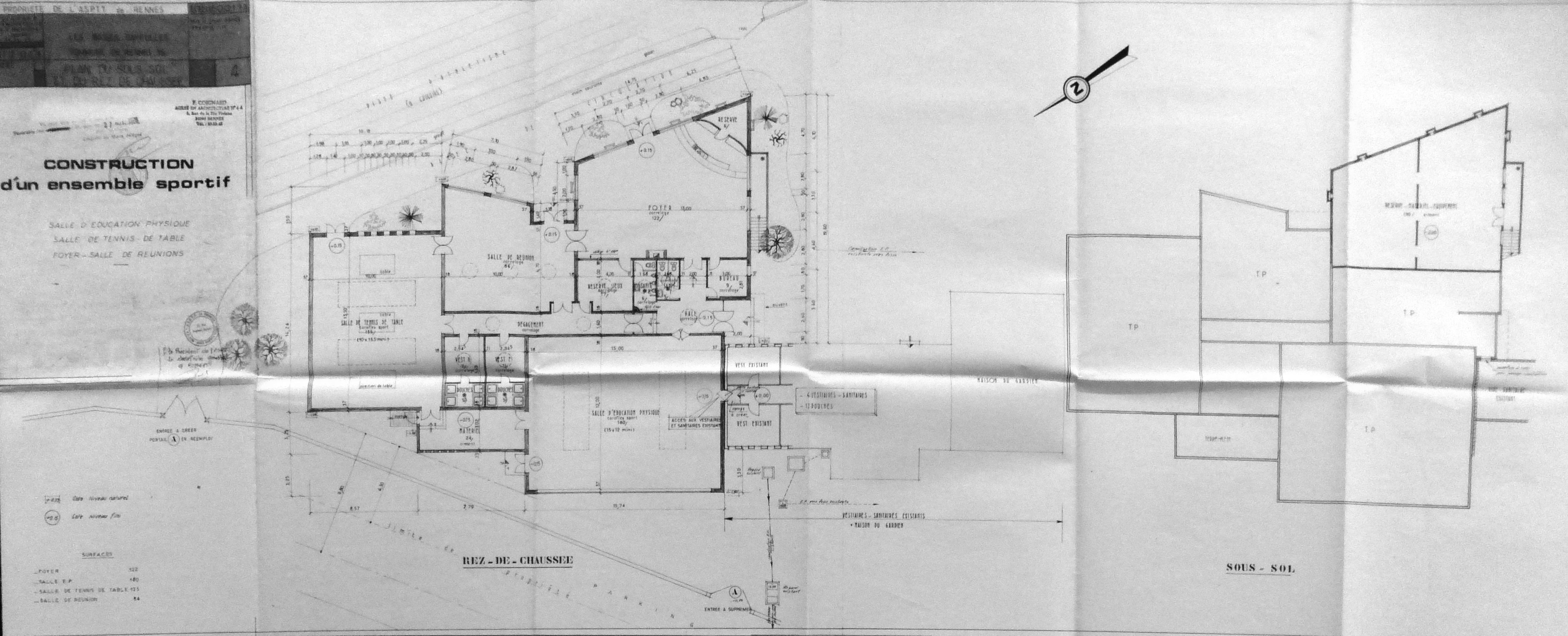AC Rennes : 802 W 35. Plan du sous-sol et du rez-de-chaussée. P. Coignard, 1978.