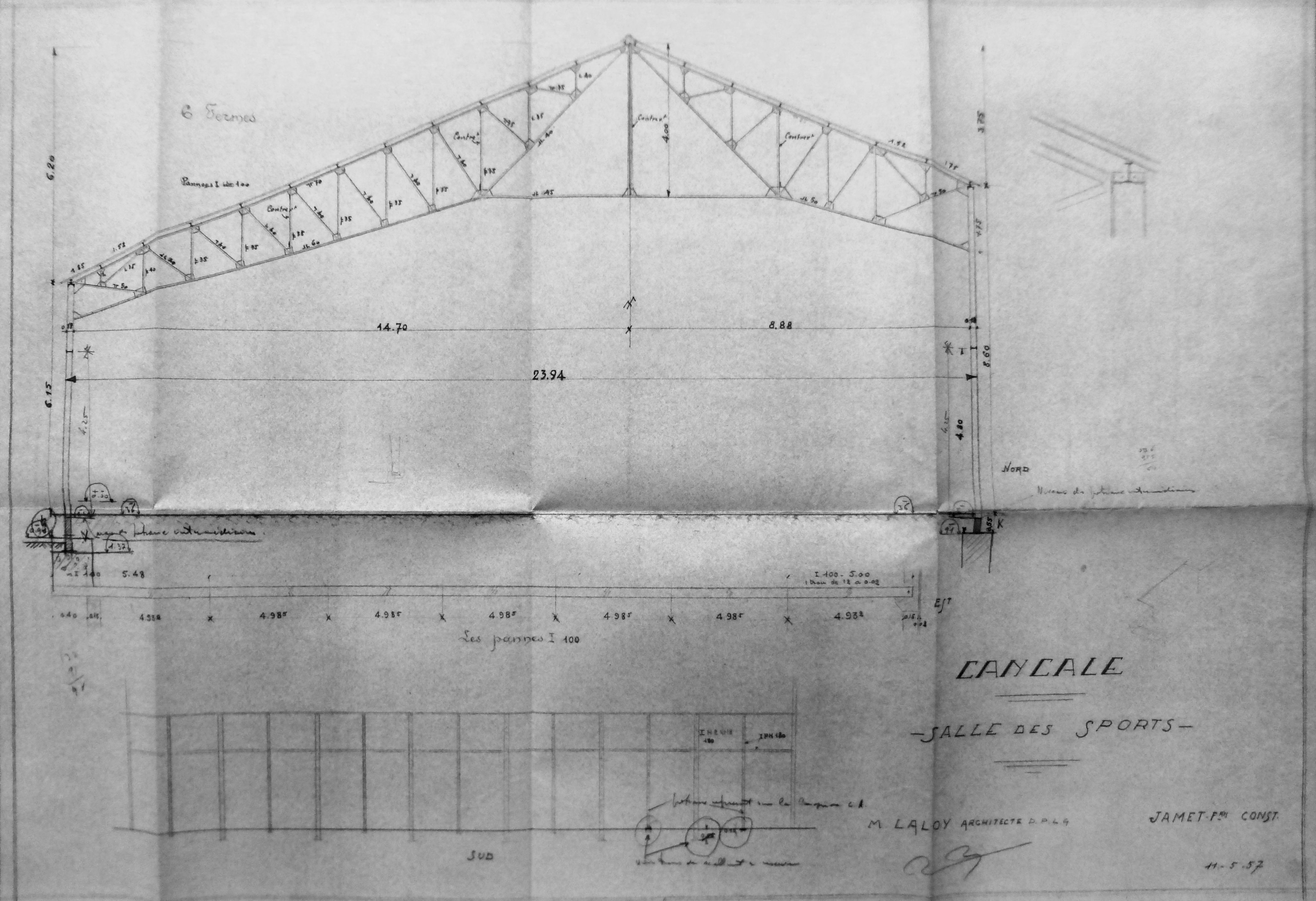 AD Ille-et-Vilaine : 106 J 493. Détail de la charpente. M. Laloy, 1957.