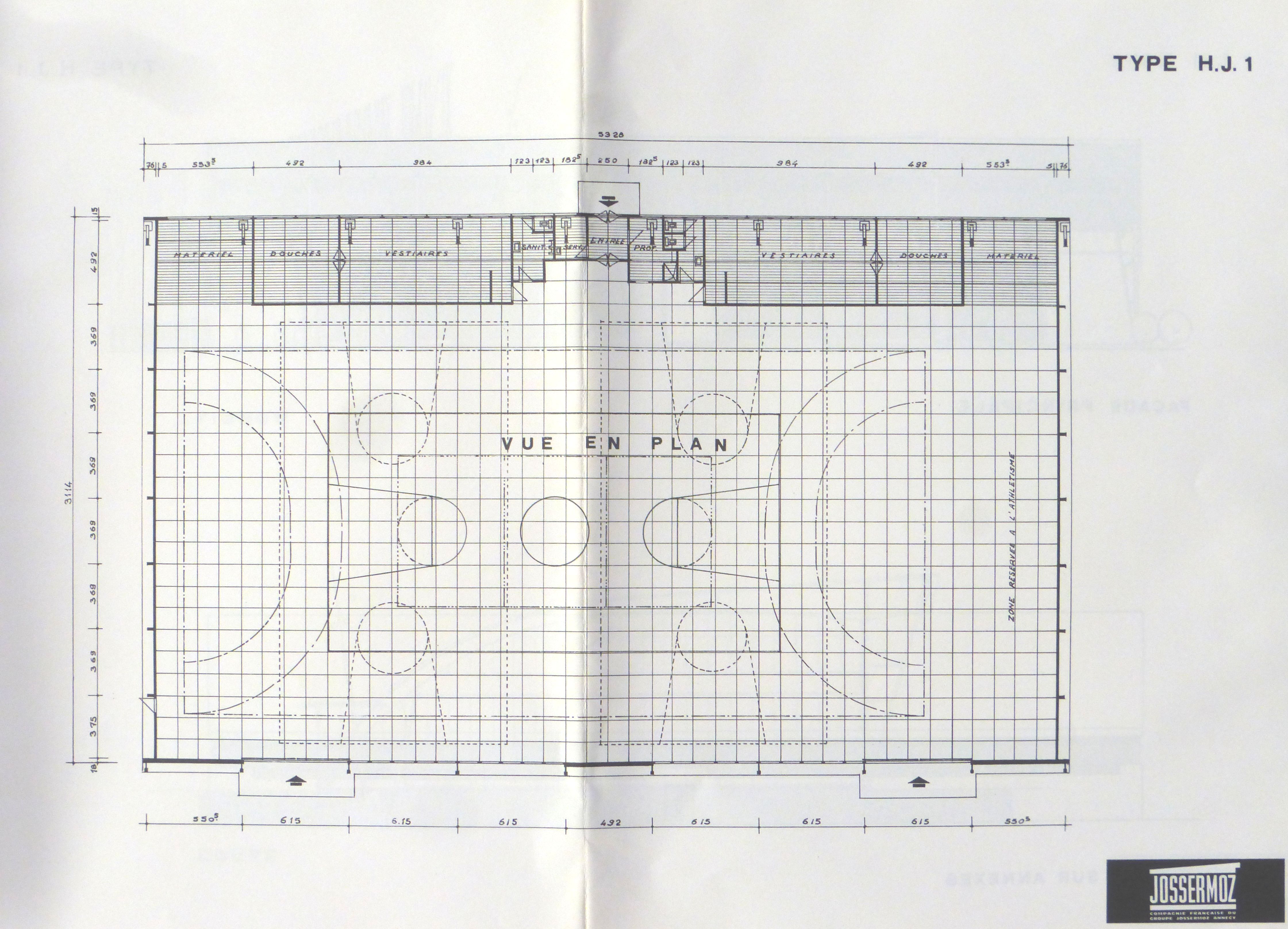 AC Rennes : 31 W 74. Plan de la halle Jossermoz HJ1. L. Miquel & A. Wogenscky, 1965.