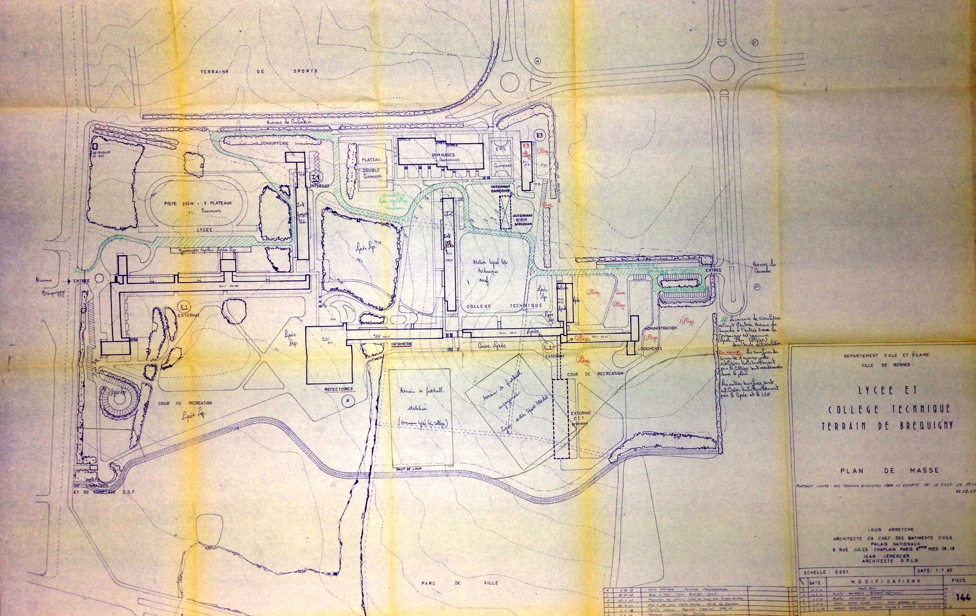 AD Ille-et-Vilaine : 1240 W 143. Plan de masse. L. Arretxe & J. Lemercier, 1960.