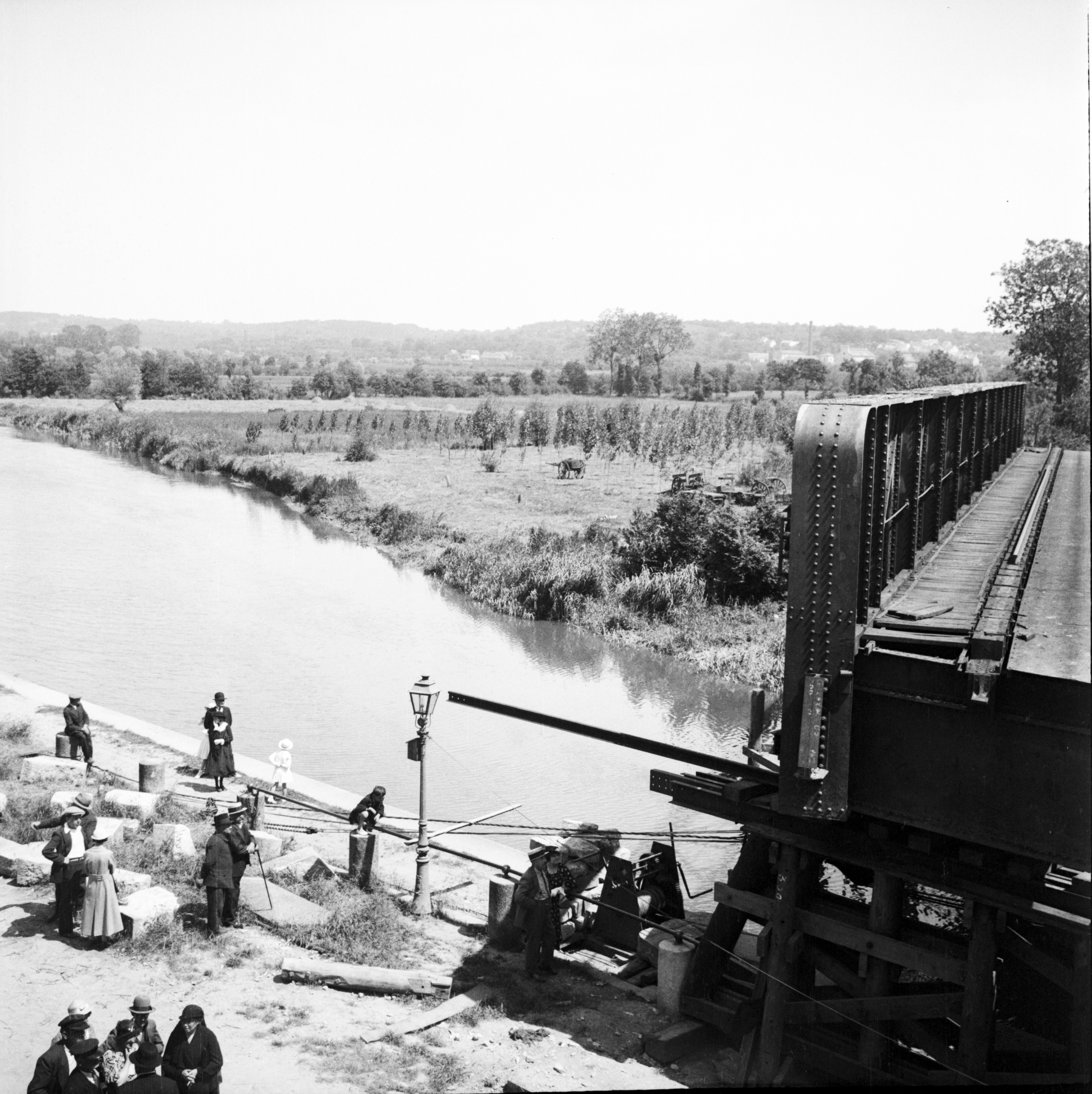 Le pont de chemin de fer sur la Vilaine au moment de sa construction : vue du quai Saint-Jacques côté Redon, et des champs de la Digue côté Saint-Nicolas-de-RedonImmatriculation
