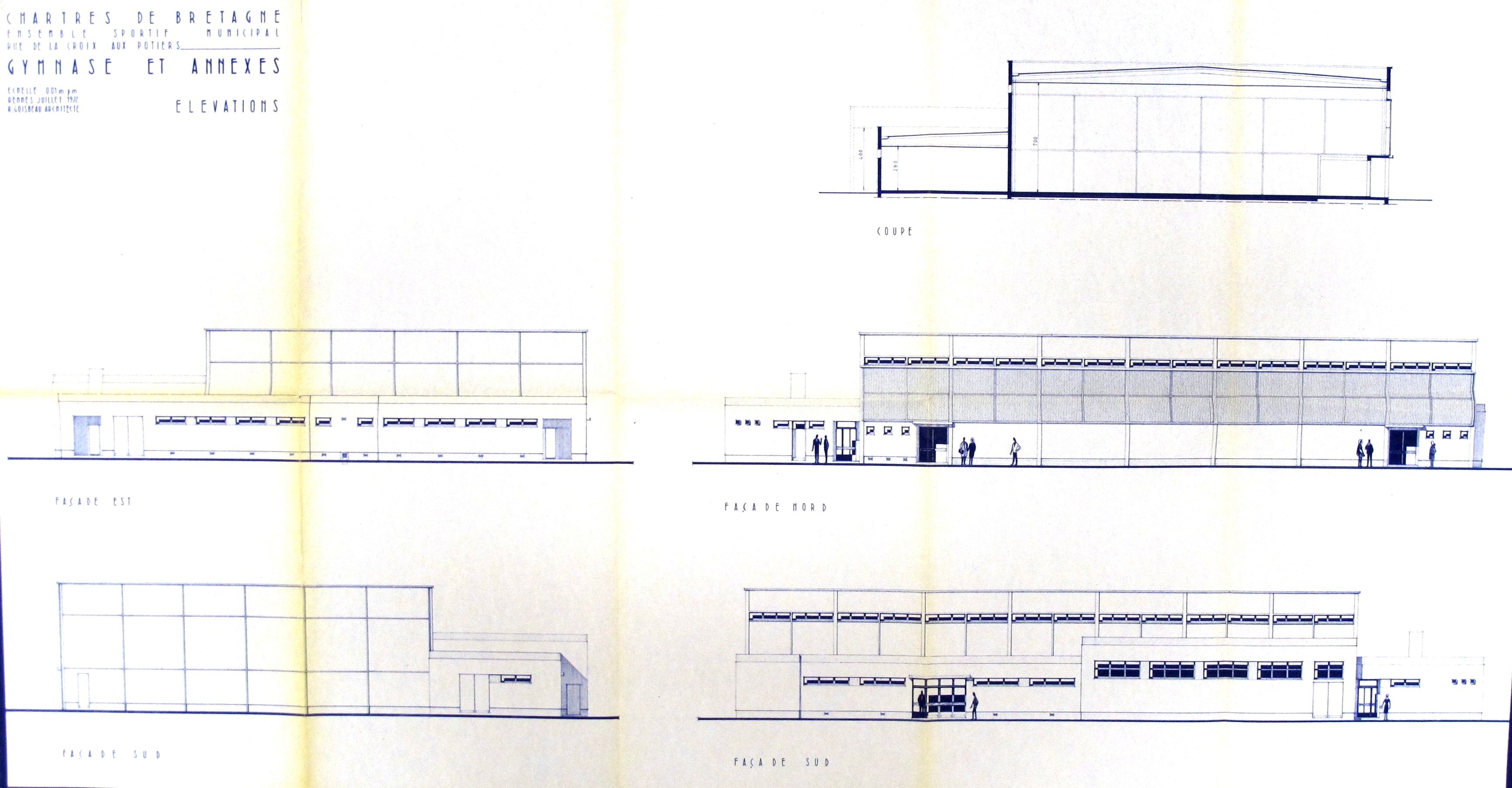 AC Chartres-de-Bretagne : 3 W 78. Coupe et élévations. R. Goisbeau, 1972.