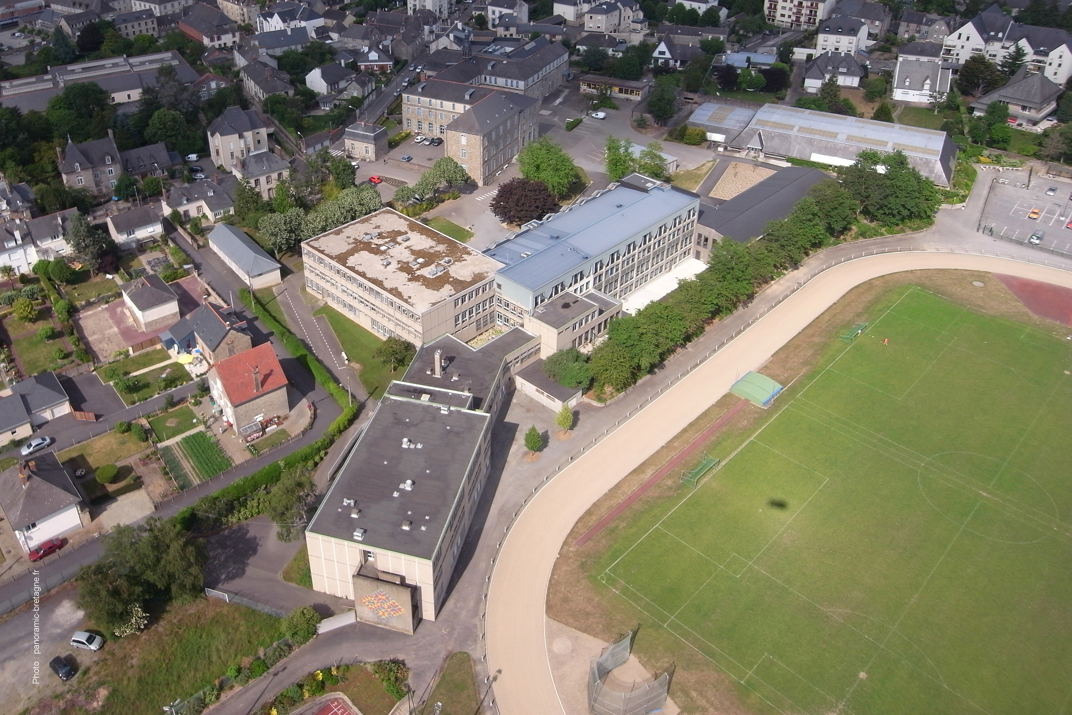 Vue aérienne d'ensemble du lycée.Immatriculation