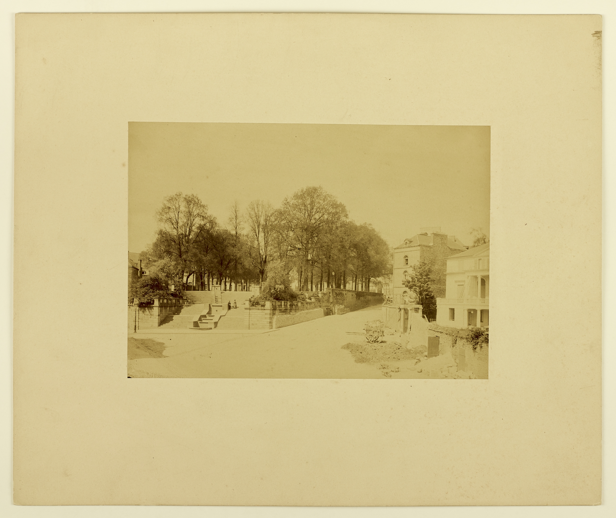 Vue de l'escalier de la Motte en 1886 montrant les travaux entrepris à l'hôtel RichelotImmatriculation