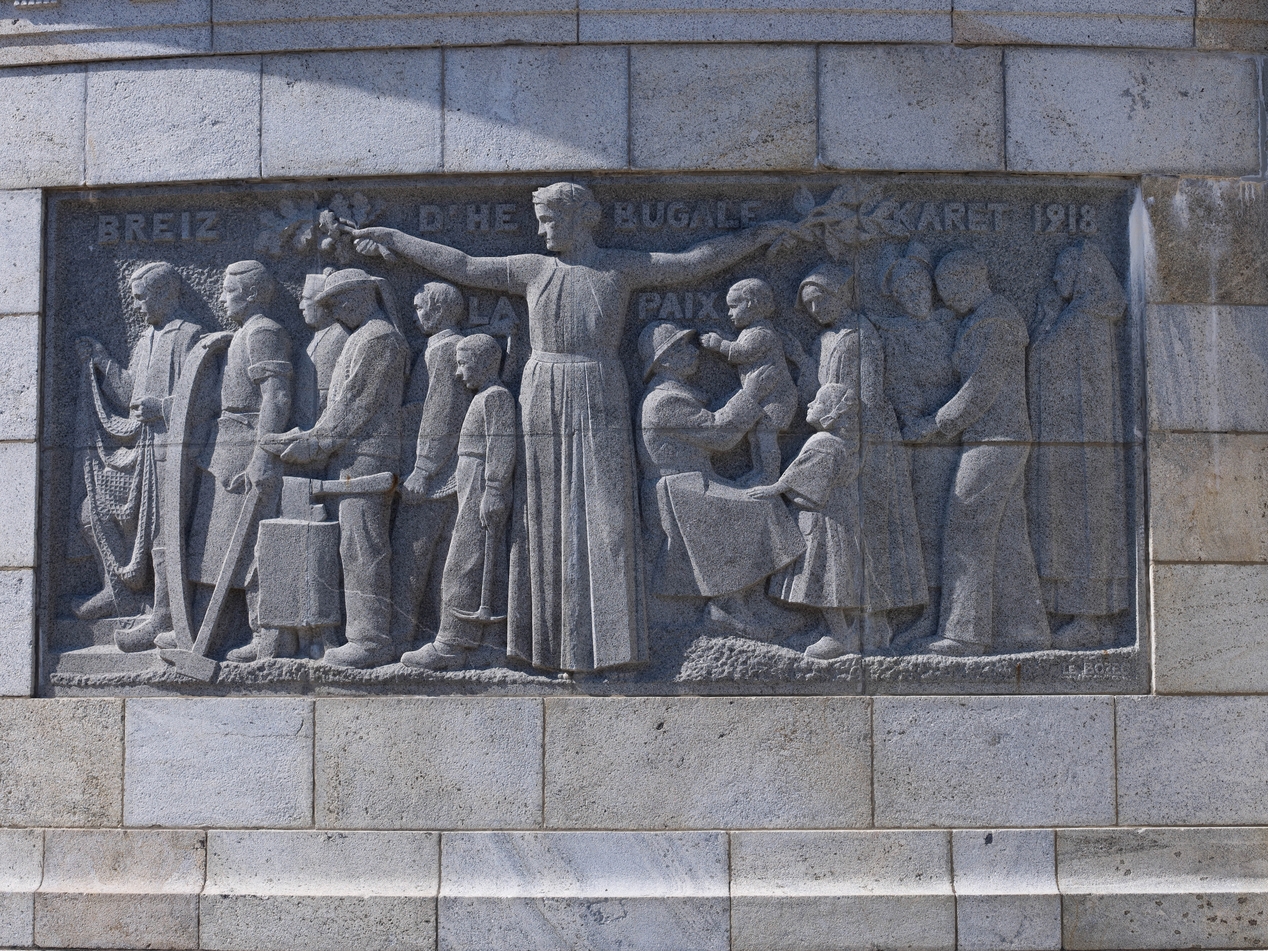 Bas-reliefs réalisés par le sculpteur Jules-Charles Le Bozec de Mellionnec.Immatriculation