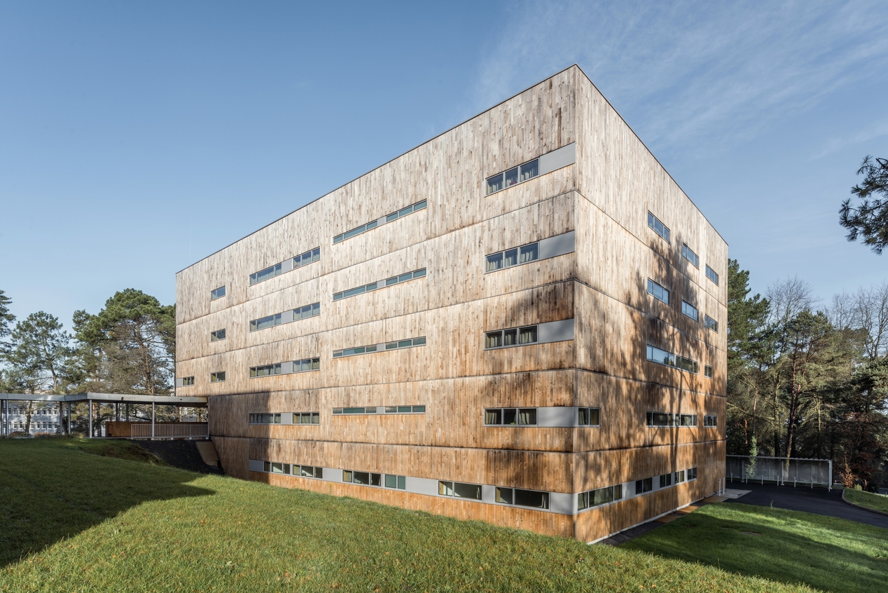 Nouvel internat (2018), David Cras, architecte. Façade arrière et pignon sud-est.Immatriculation
