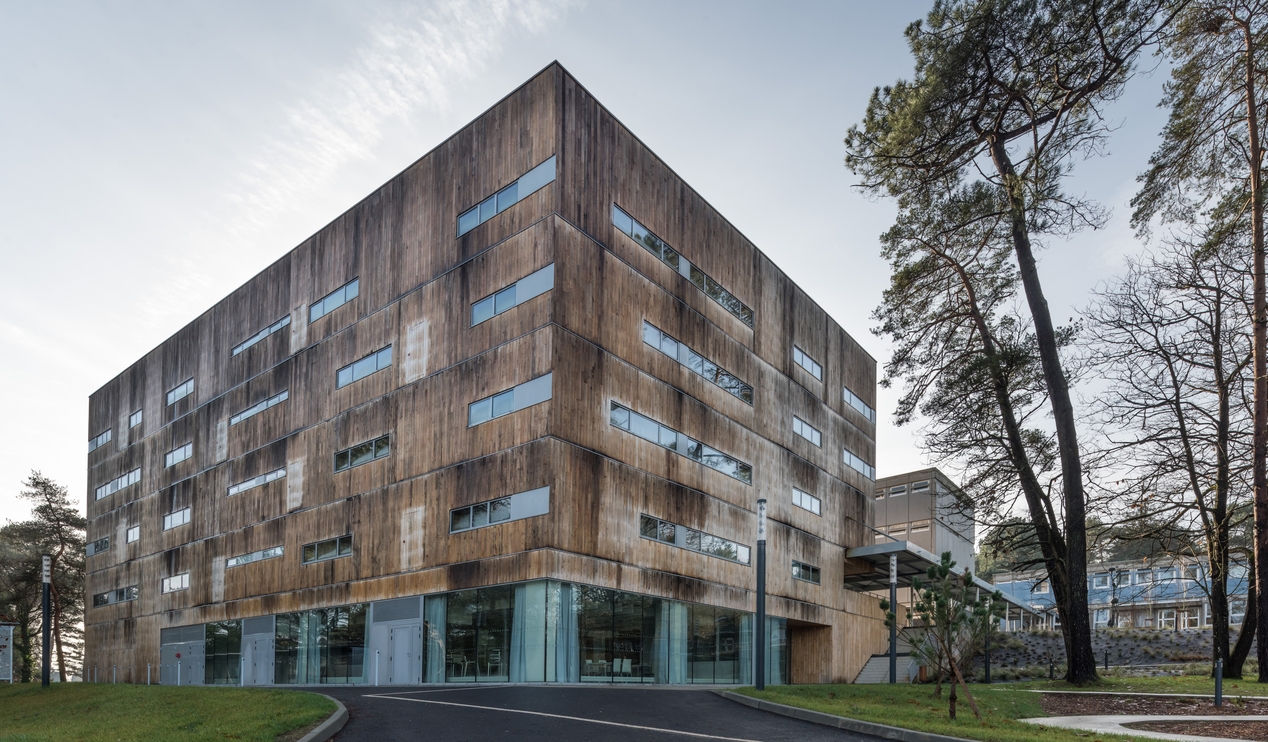 Nouvel internat (2018), David Cras, architecte. Vue d'ensemble prise depuis le nord.Immatriculation