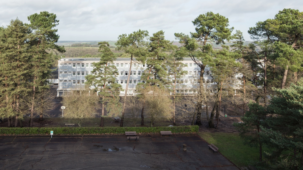 Le parc et l'externat (A), vus des du bâtiment C.Immatriculation