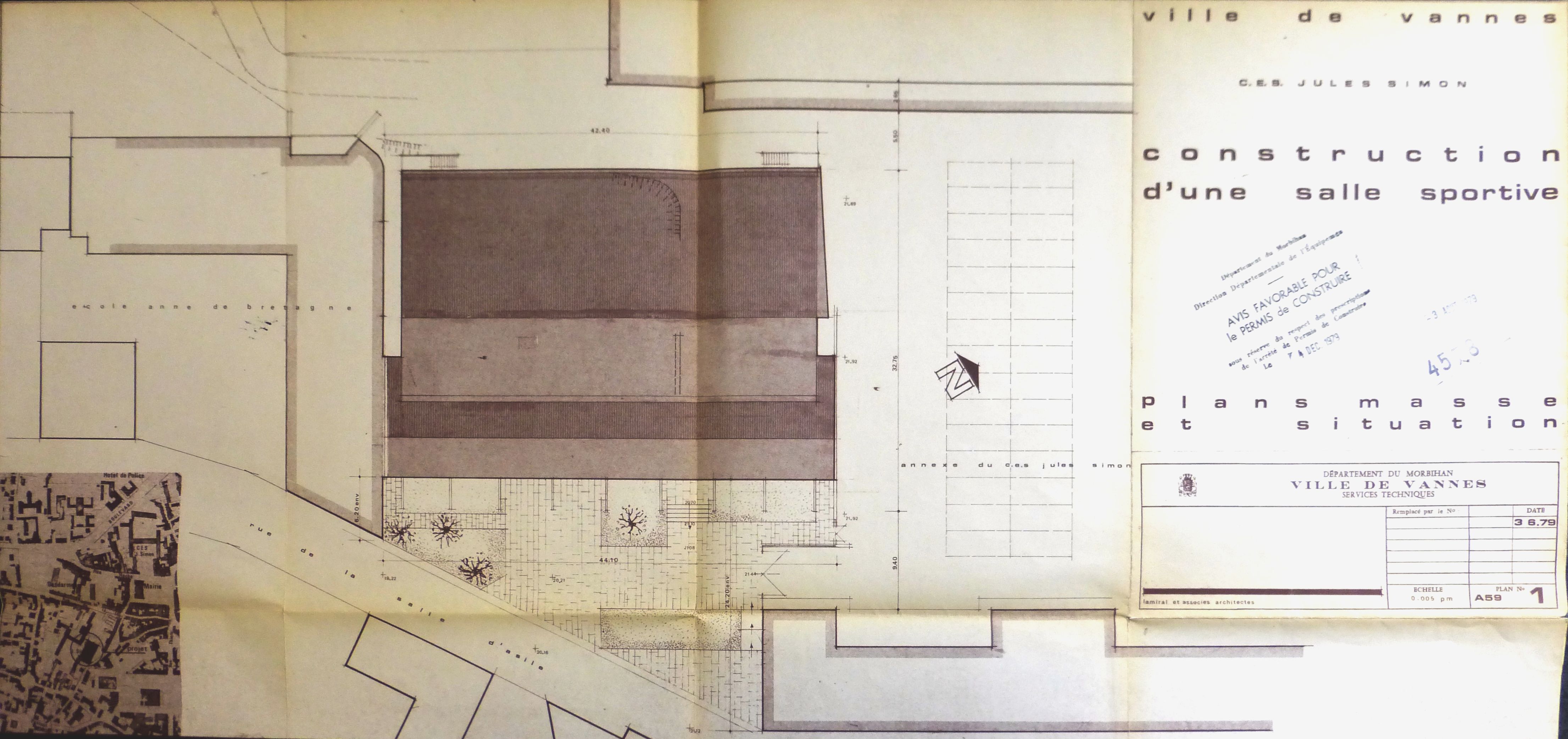 AC Vannes : 35 W 7185. Plans masse et situation. A. Ladmiral, 1979.