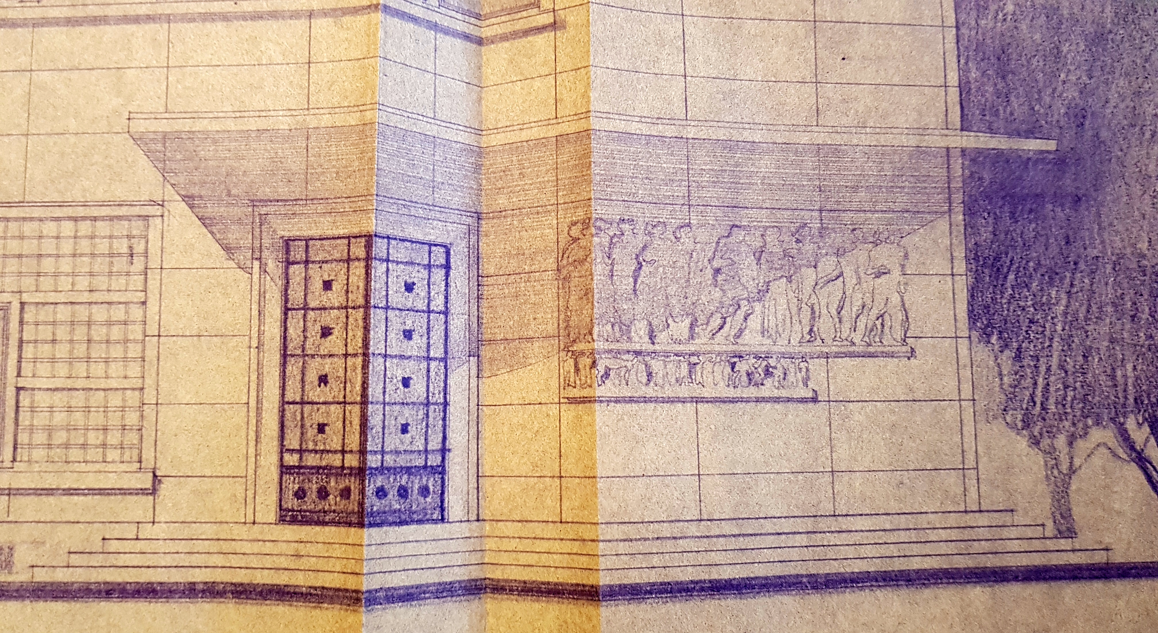 Internat : détail d'une élévation de la façade sud, non éxécuté (G. Tourry architecte chef de groupe, Baudeau, Conan, Grihangne, architectes, janvier 1952)Immatriculation