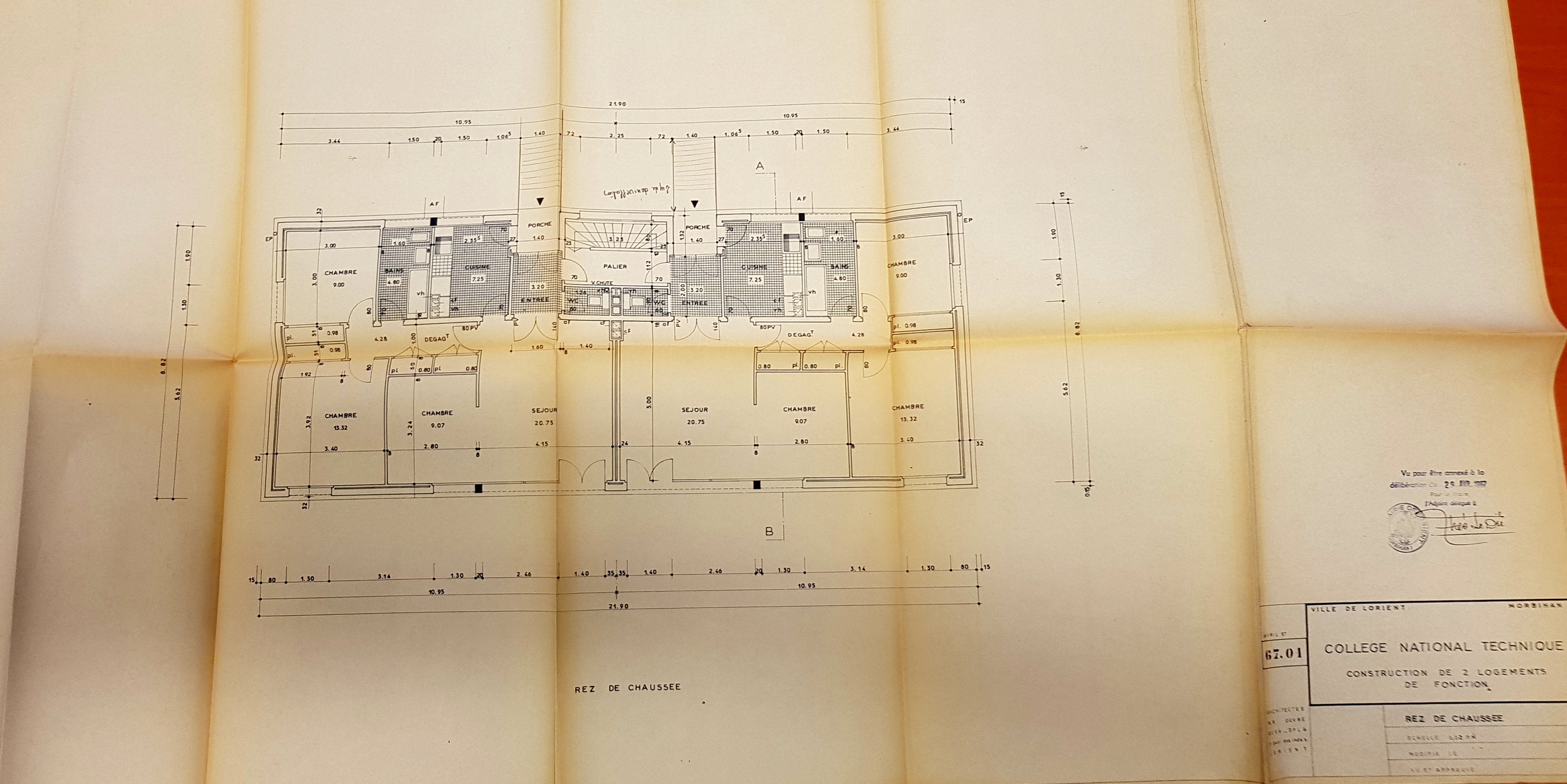 Plans de deux logements de fonction, René Ouvré architecte, avril 1967 (AM_Lorient_1NC1324).Immatriculation