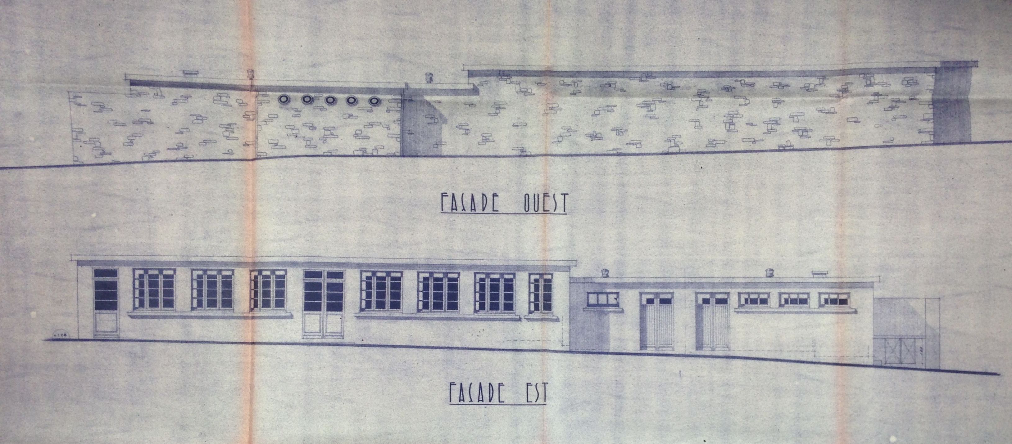 AD Ille-et-Vilaine : 1242 W 128. Centre d'activité nautique de Beg Rohu : façades ouest et est. A. Charron, 1958.
