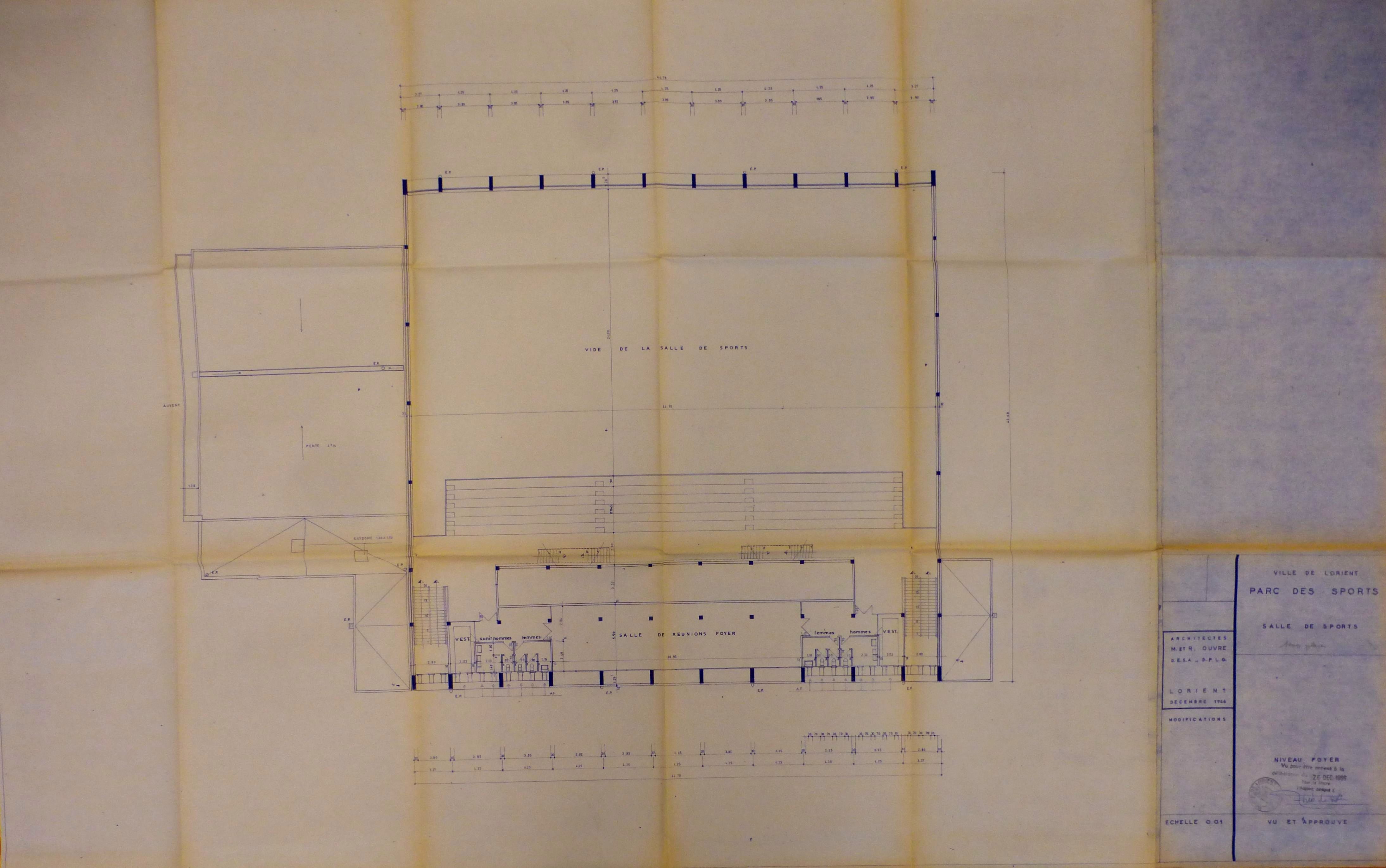 AC Lorient : 1 NC 1461. Plan niveau foyer. M. & R. Ouvré, 1966.