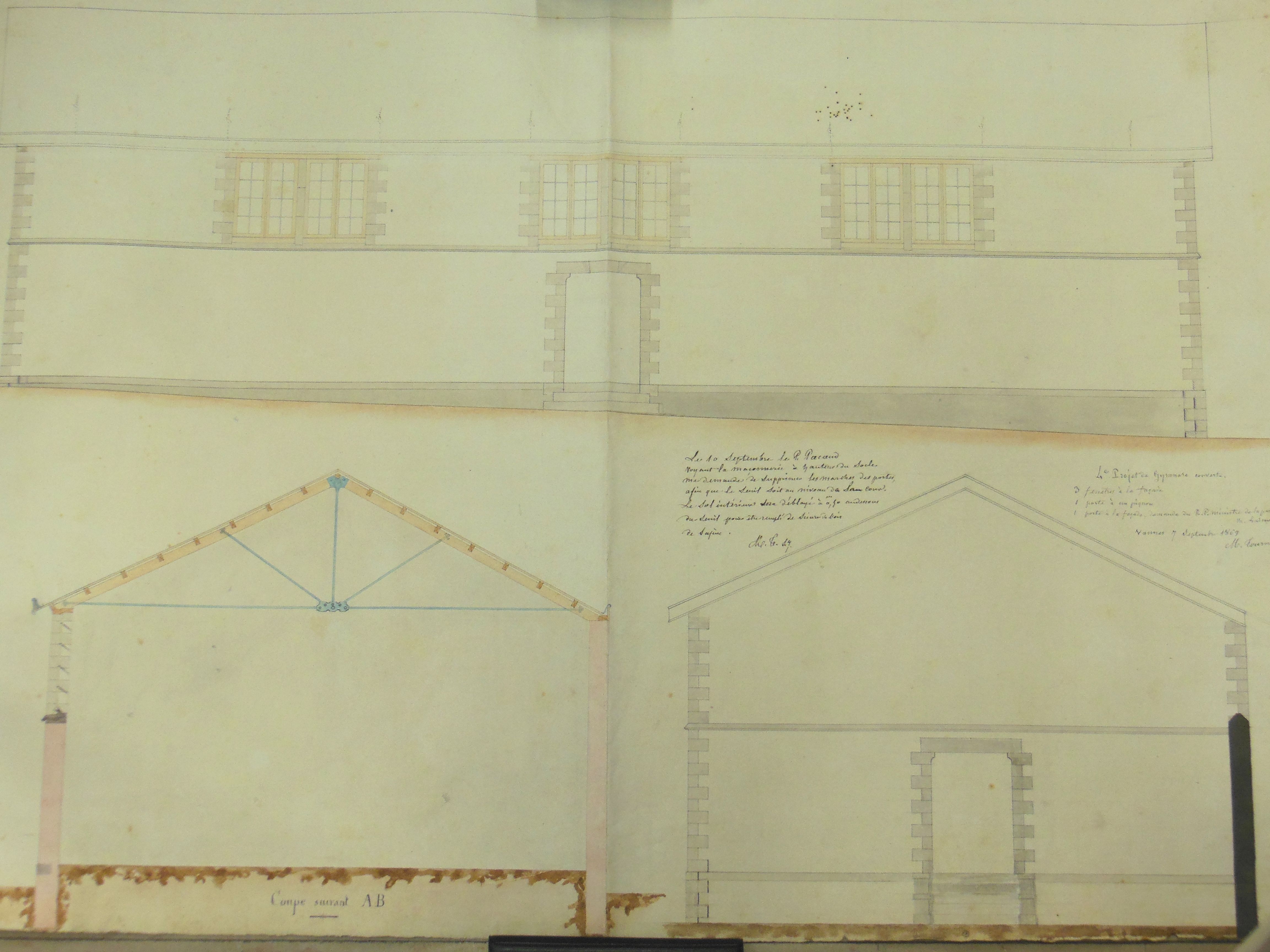 AC Vannes : Fonds de Saint-François-Xavier. Façades et coupe (4e projet). M. Tournesac, 1869.