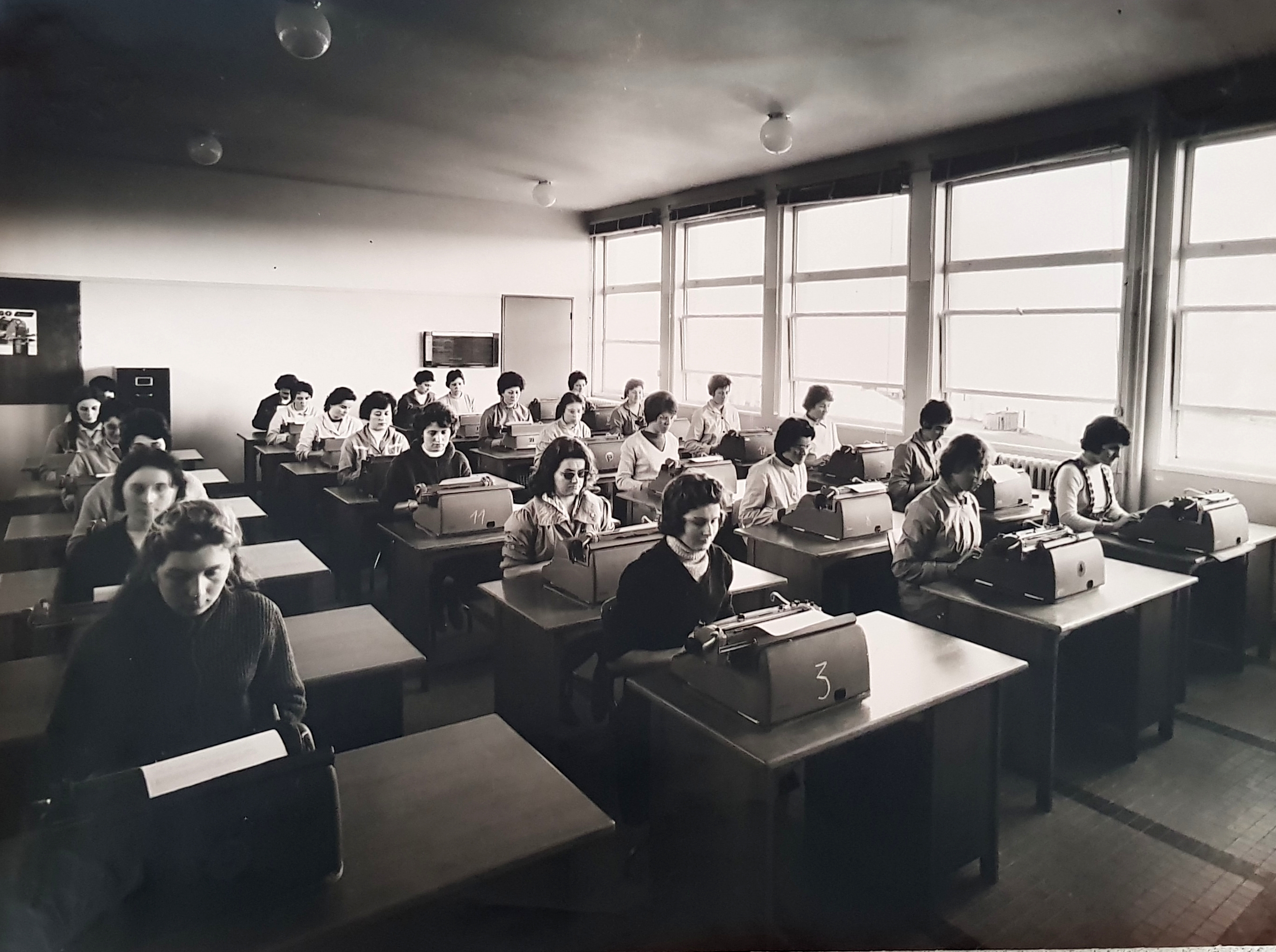 Salle de cours de dactylographie.Immatriculation