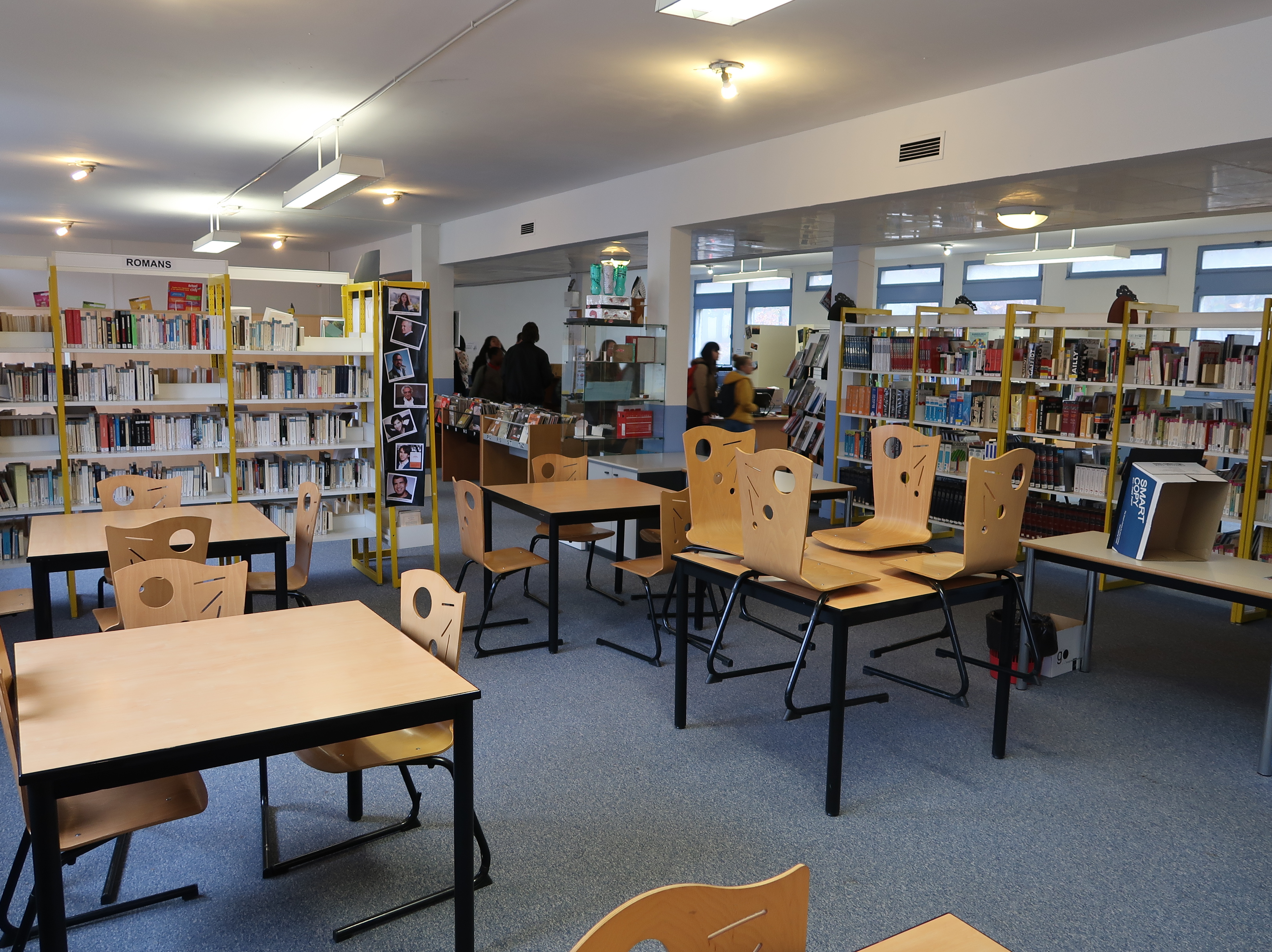 Le CDI, aménagé dans l'ancien internat de garçons. La structure du couloir central est apparente.Immatriculation