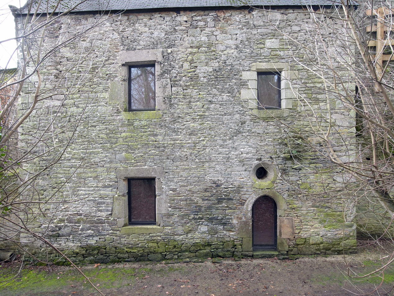 Minihy-Tréguier : manoir de Saint-Renaud, élévation postérieure nord, vue générale (porte en arc plein cintre surmontée d'un oculus)Immatriculation