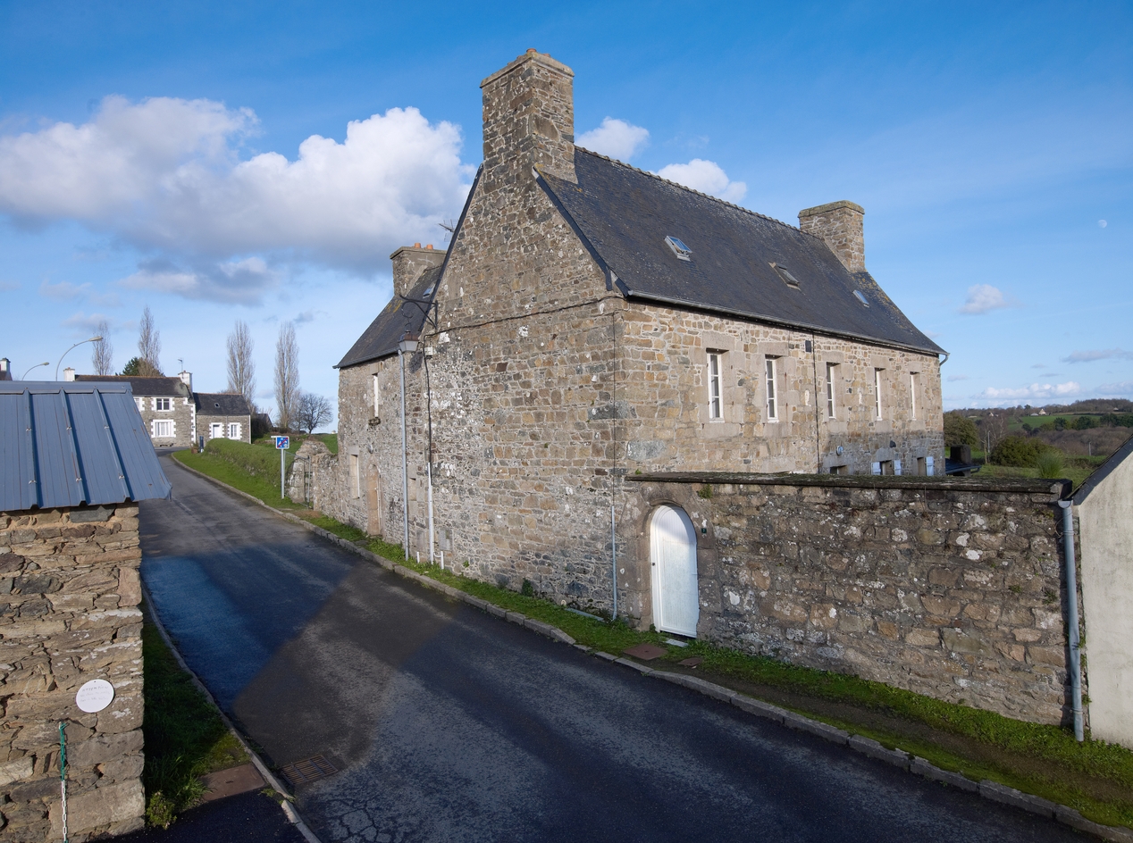 Minihy-Tréguier, 9 rue du Bourg : ensemble bâti, vue générale depuis l'ouest, élévation sud du logis principalImmatriculation