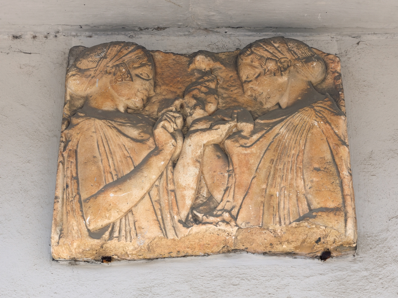Bas-relief côté cour du bâtiment A : moulage en plâtre.Immatriculation