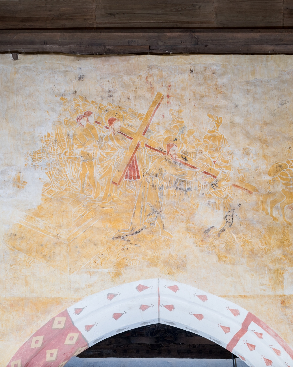 Peintures murales du XVe siècle. Le portement de Croix.Immatriculation