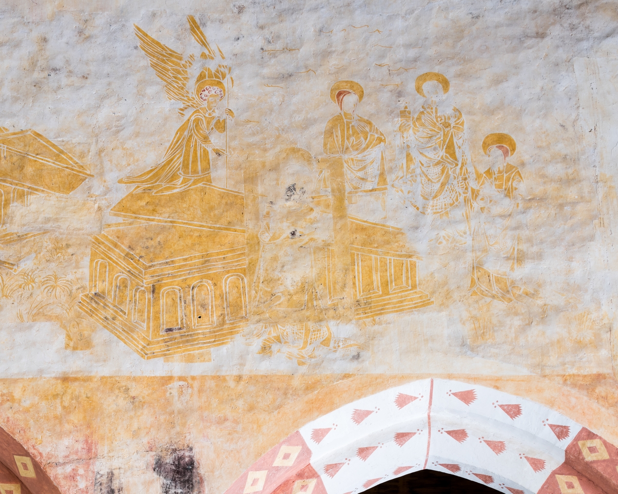 Peintures murales du XVè siècle. Les saintes femmes au tombeau.Immatriculation