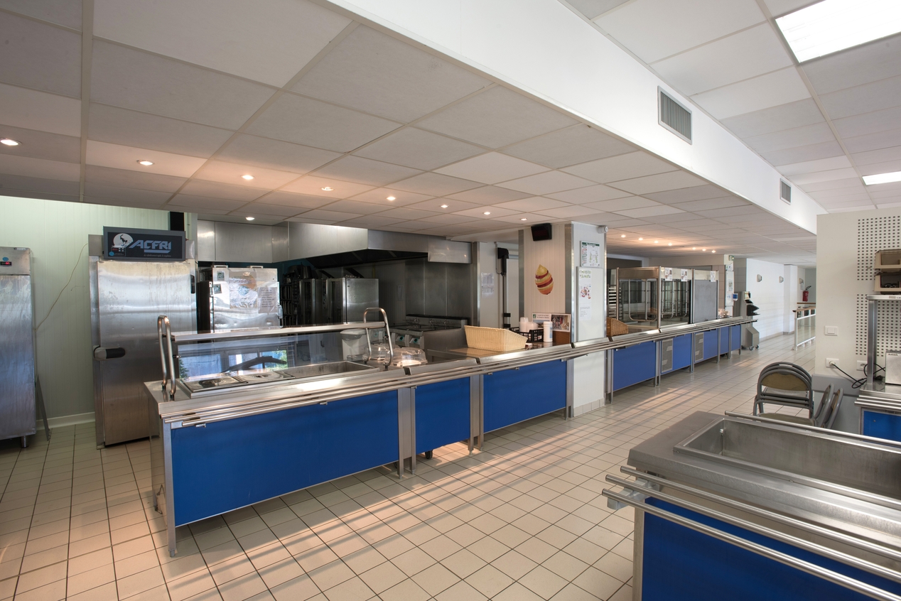 Le réfectoire : ligne de self-service.Immatriculation