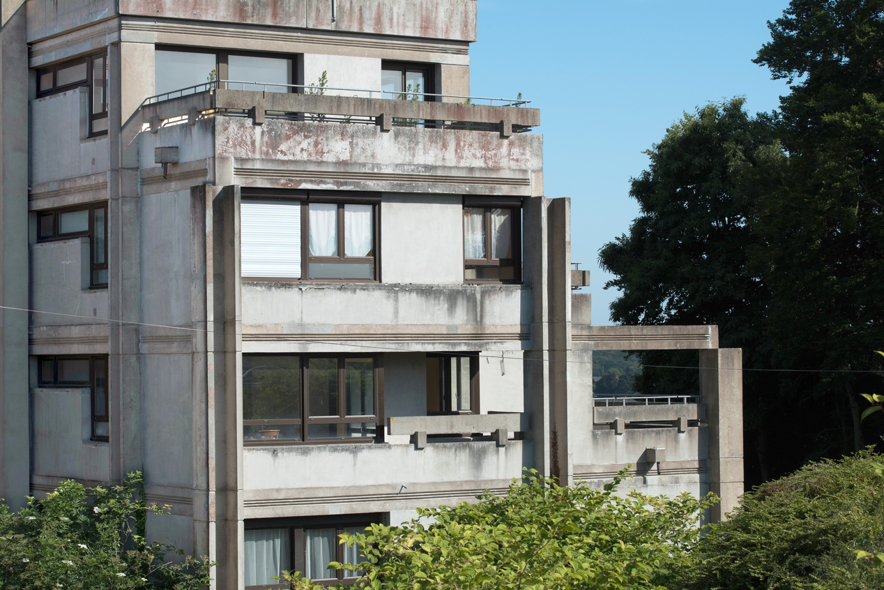 Logements de fonction : détail de la façade ouest.