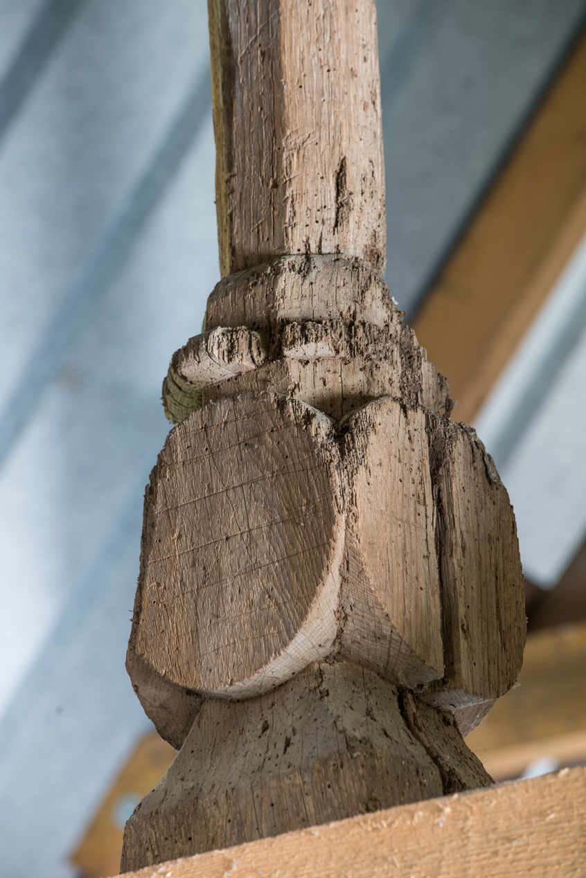 Charpente, détail d'un poinçon avec écus muetsImmatriculation